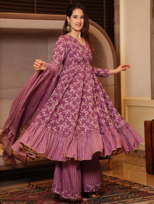 - Printed Anarkali Suits: Add a splash of color to your wardrobe with our printed Anarkali suits, featuring floral, geometric, and abstract patterns.
