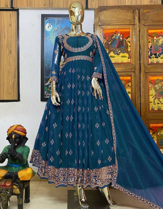 Black georgette heavy flair anarkali suit with heavy work dupatta