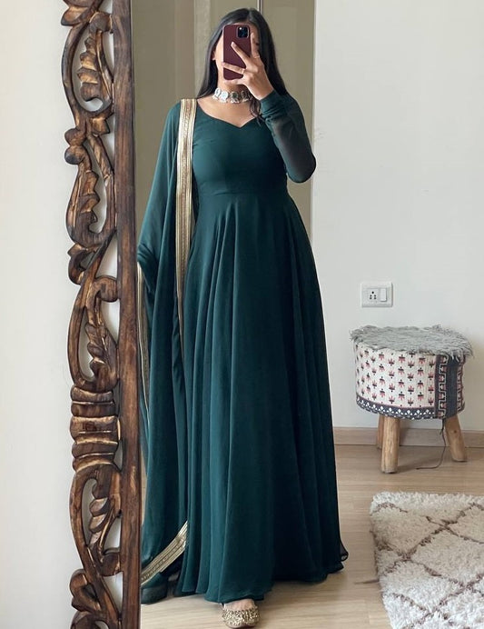 Dark green georgette long party wear anarkali ethnic gown