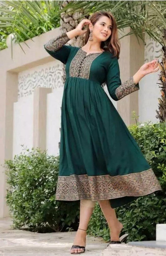 Green rayon printed anarkali kurti