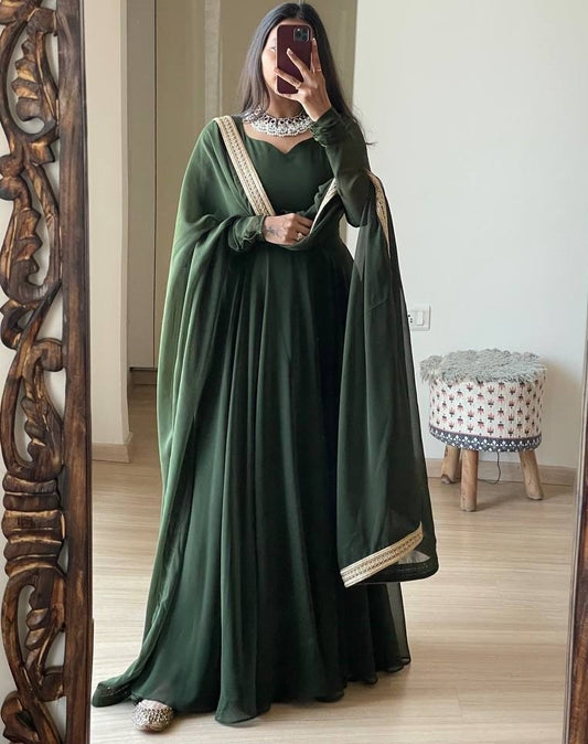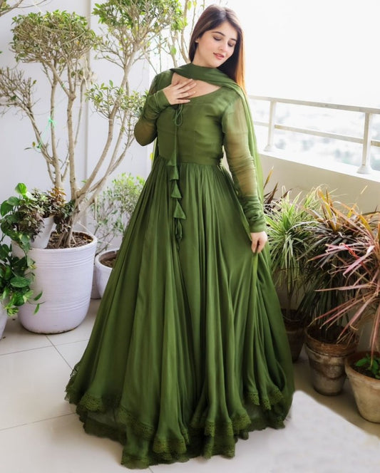 Mehendi green georgette plain long anarkali suit