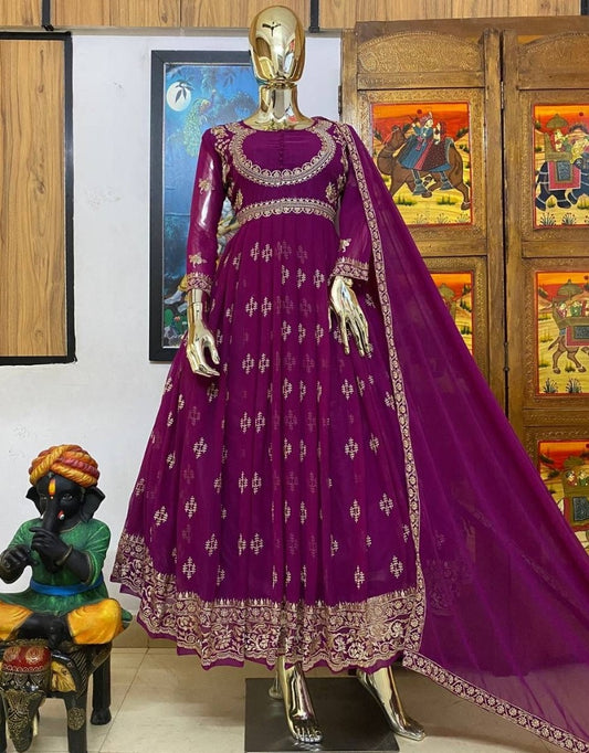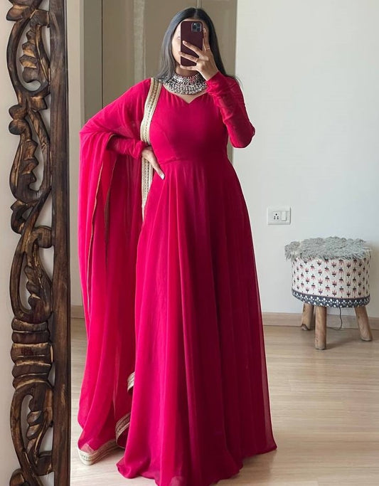 Dark rani pink georgette long party wear anarkali ethnic gown