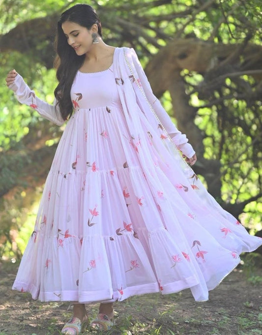 Light pink printed ruffle layer anarkali suit