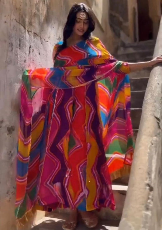 - Printed Anarkali Suits: Add a splash of color to your wardrobe with our printed Anarkali suits, featuring floral, geometric, and abstract patterns.