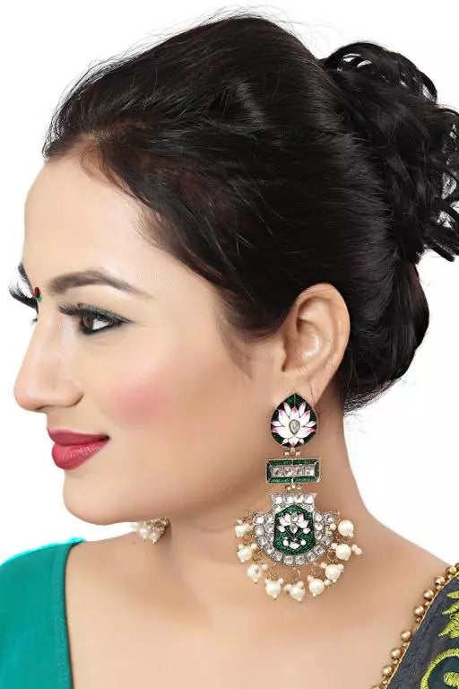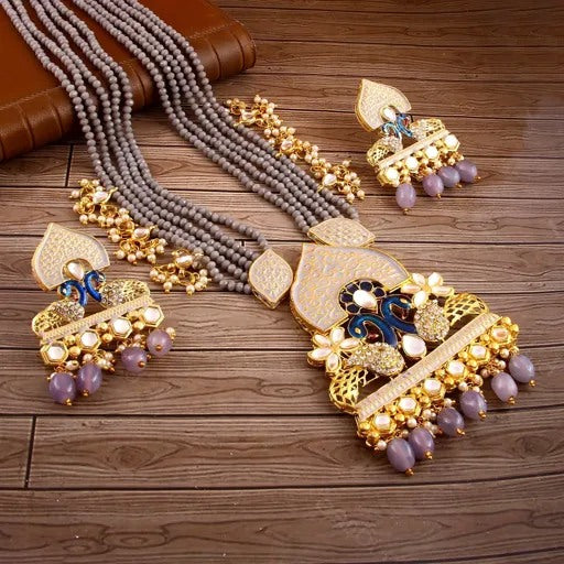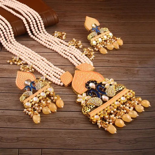 Spargz Bridal Alloy Wedding Gold Plated Kundan & Bead Necklace Set For Women