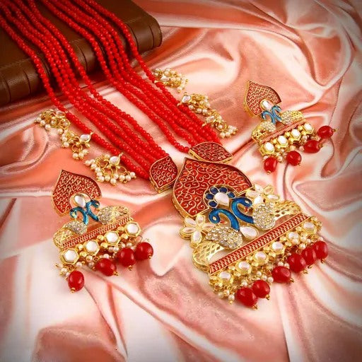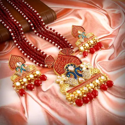 Maroon Pearls Gold Plated Jewellery Set for Women