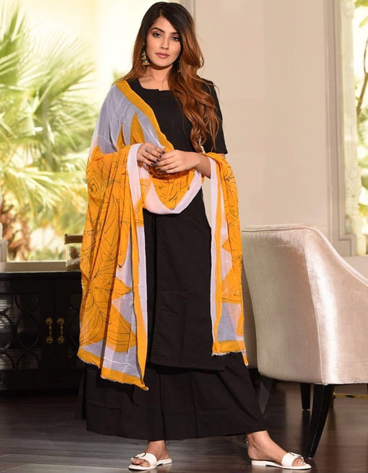 Black heavy cotton kurti with printed dupatta