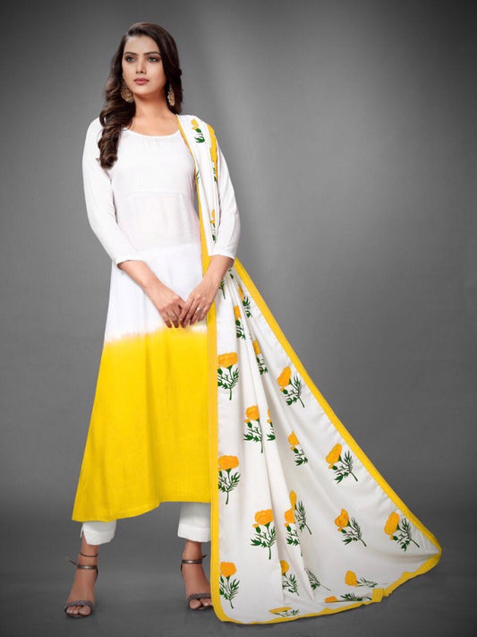multicolor heavy rayon kurti with digital printed dupatta