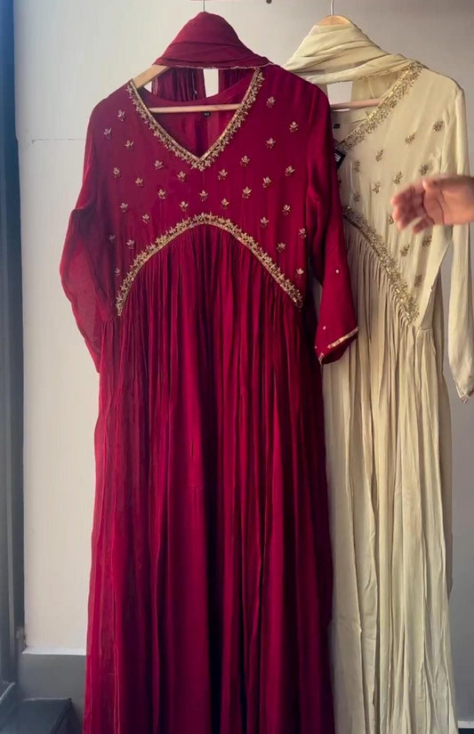 Maroon georgette handwork kurti