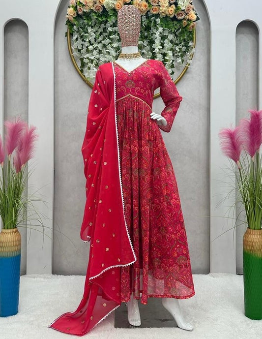 Red georgette long kurti