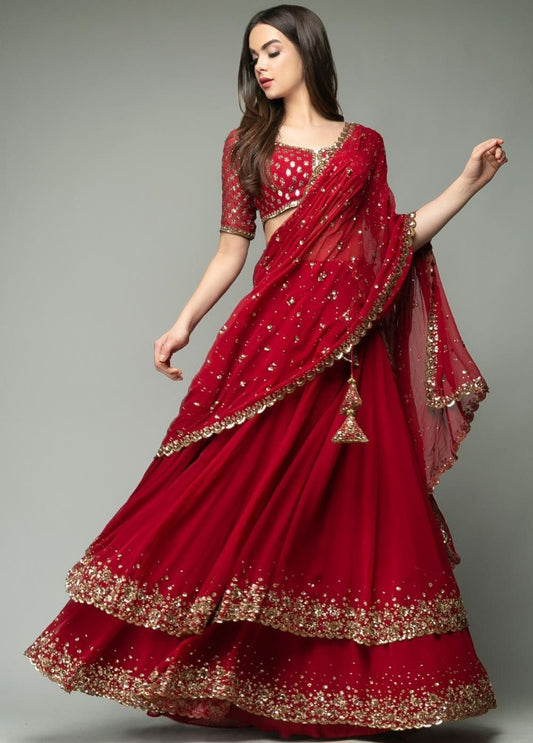 Red georgette heavy embroidered designer lehenga choli for wedding