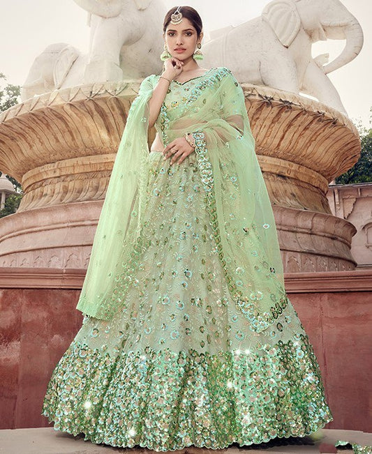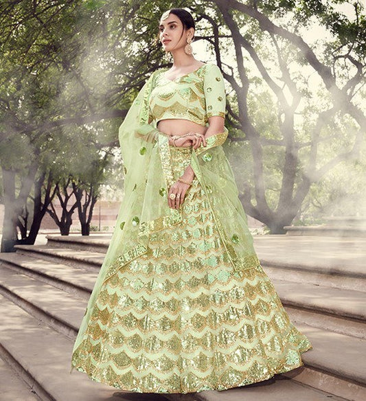 Green kasturi silk heavy sequence work lehenga choli for ceremony
