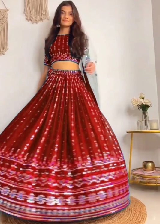 Maroon georgette sequence work party wear lehenga choli