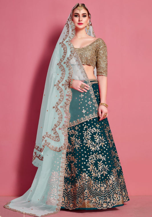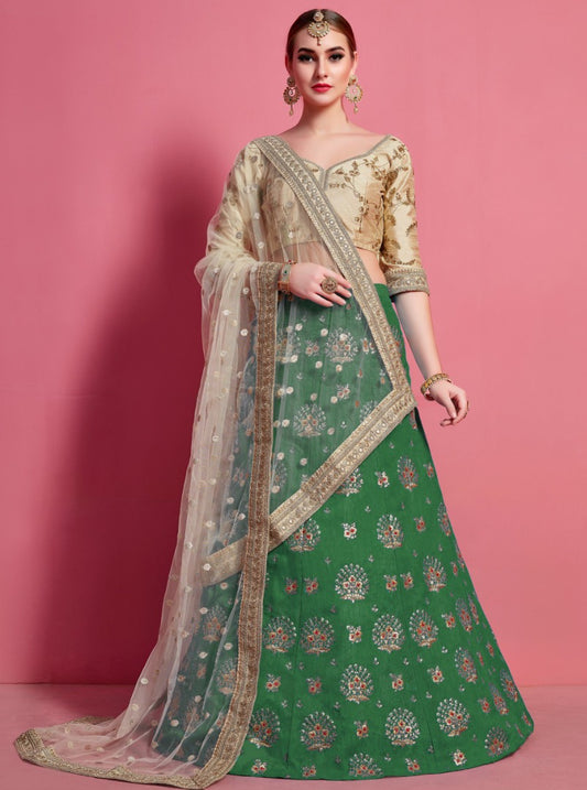 Green kasturi silk heavy sequence work lehenga choli for ceremony