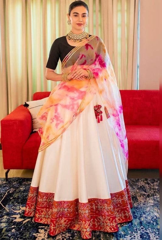 White taffeta silk embroidered foil mirror work traditional lehenga choli
