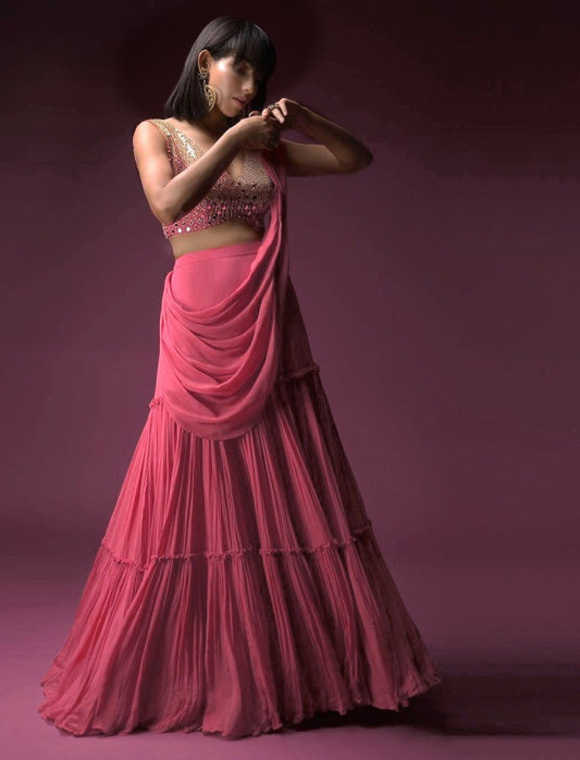 Magento pink georgette indowesten lehenga with koti