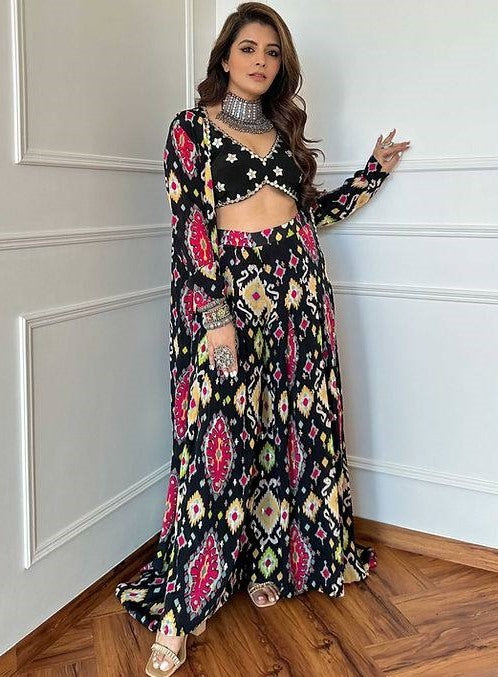 Black printed indowestern plazzo suit