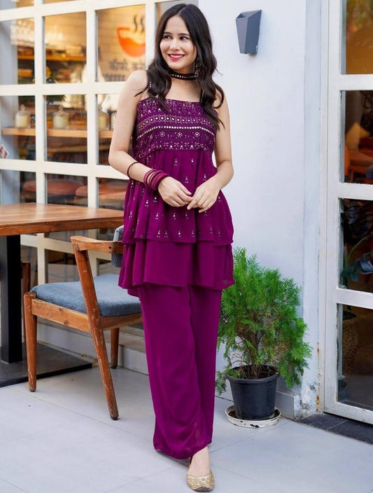 Purple sequence embroidery work designer palazzo suit