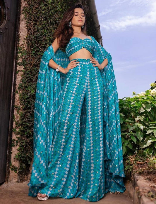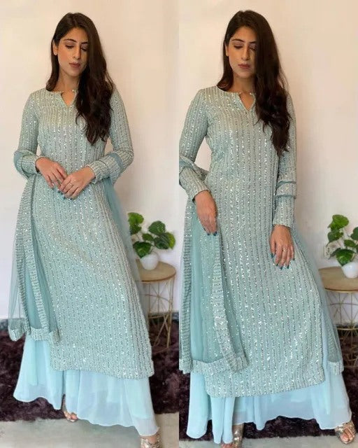 Skyblue Fox Georgette with sequence Embroidered work Palazzo Suit