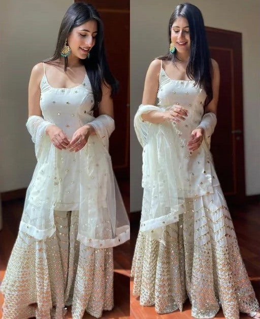 White Fox Georgette Mirror Embroidered work Palazzo Suit
