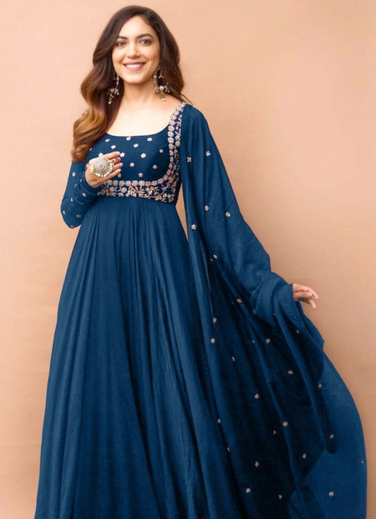Dark blue georgette heavy embroidery work wedding lehenga choli