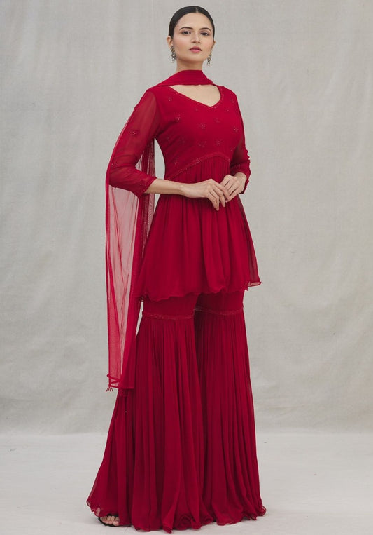 Red georgette sharara suit for wedding