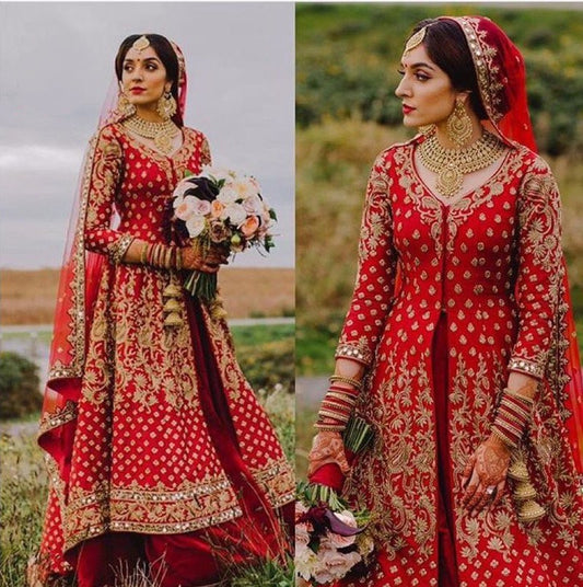 red milano silk embroidered bridal lacha with jacket