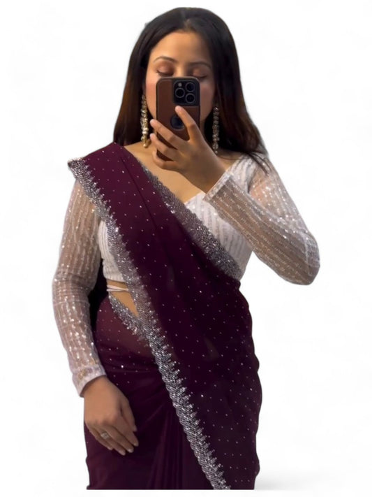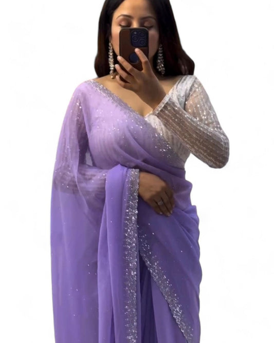 Dusty rose georgette heavy shiny sequins work party wear saree