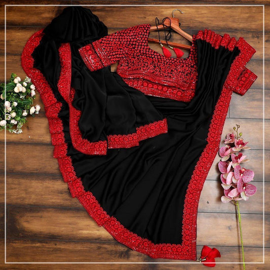 - Rich Fabrics: Silk, satin, georgette, and net are popular choices for wedding sarees.