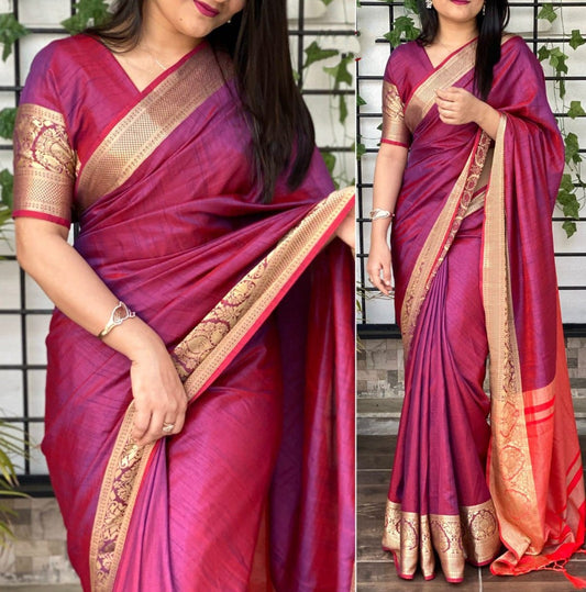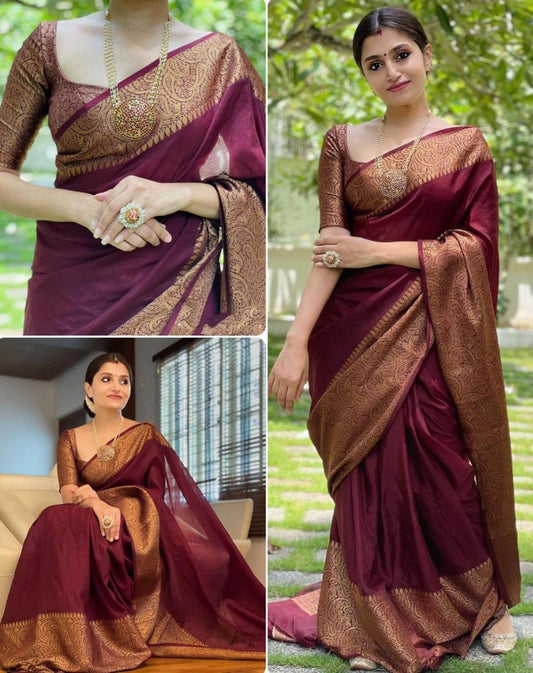 Wine banarasi kota silk jacquard weaving work wedding saree