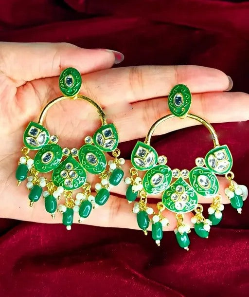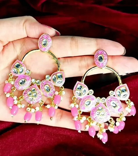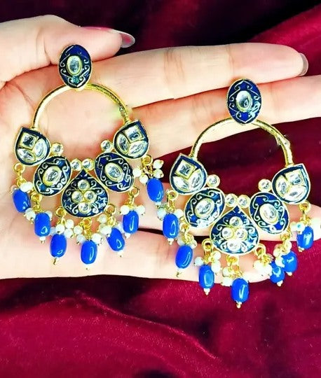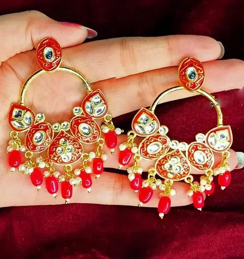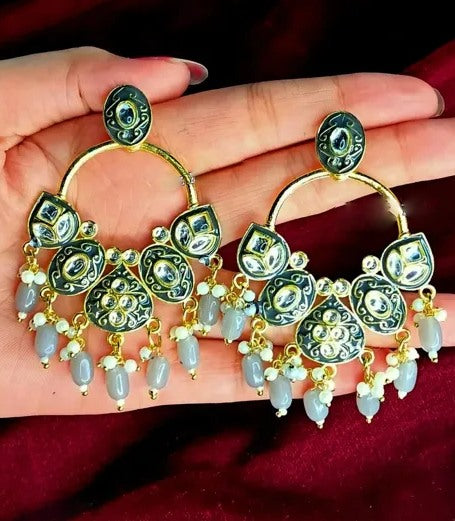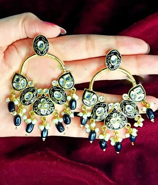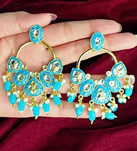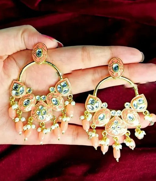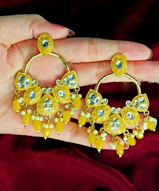 Alloy gold plated kundan chandelier earrings