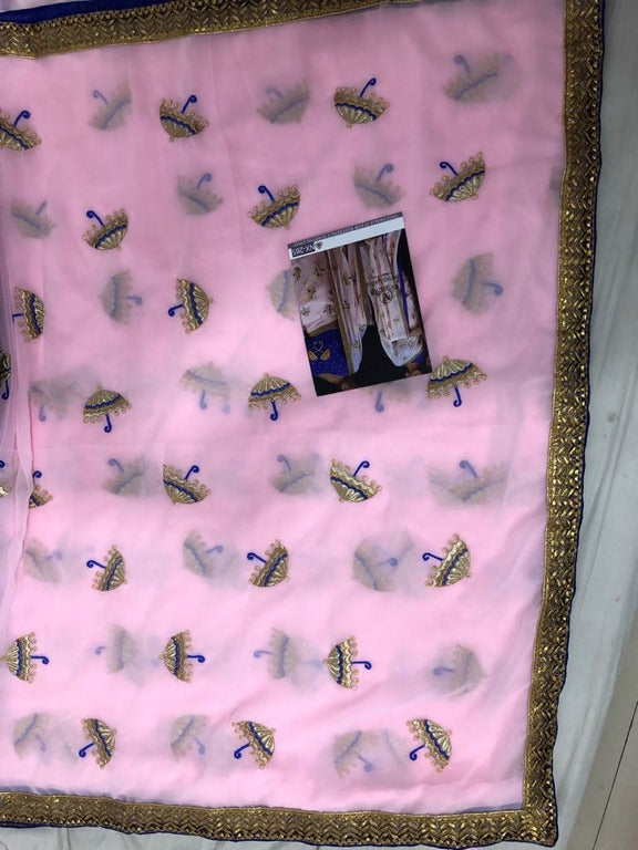 baby pink Georgette embroidered festival wear saree