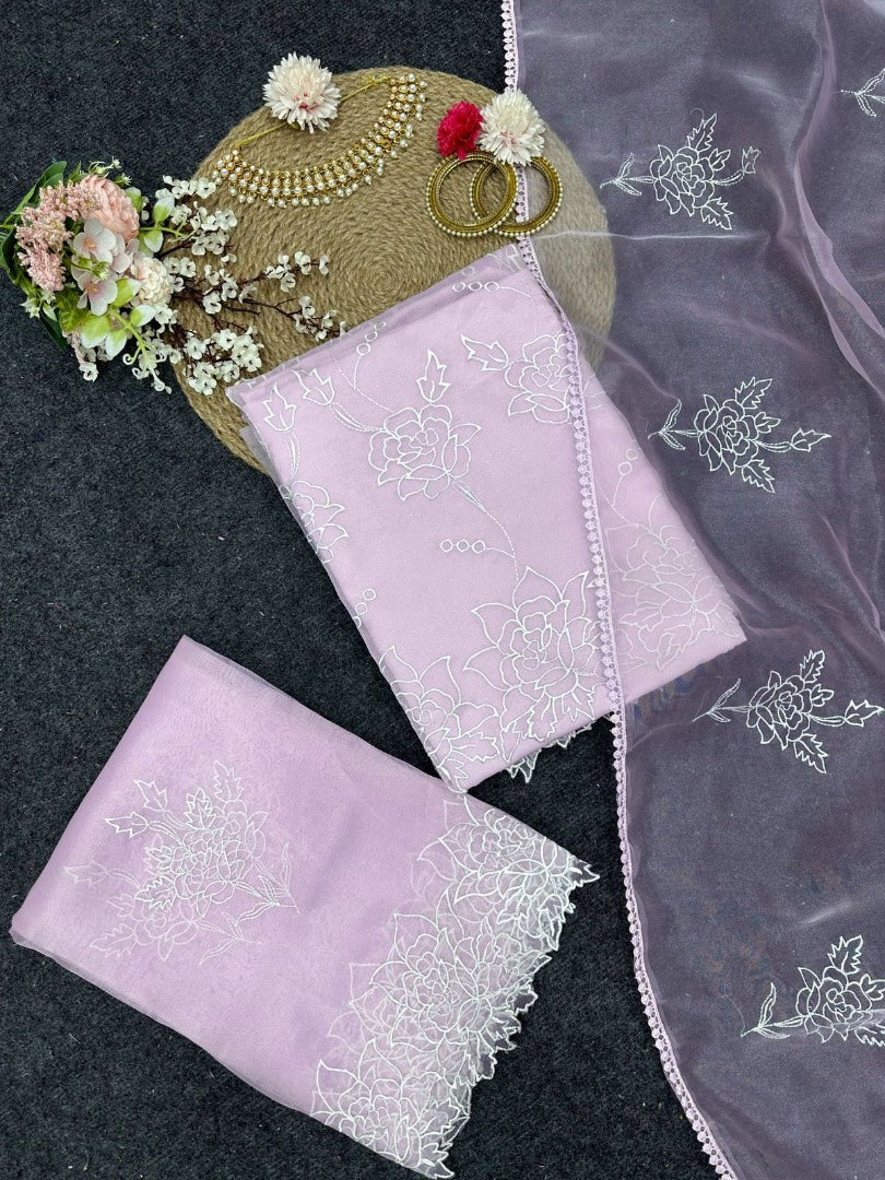 Embrace the charm of traditional craftsmanship and create your own style statement with this Unstitched Salwar Suit. Whether it's a special occasion or a festive celebration, you'll shine in this timeless outfit. Order now and experience the allure of organza silk and exquisite threadwork!