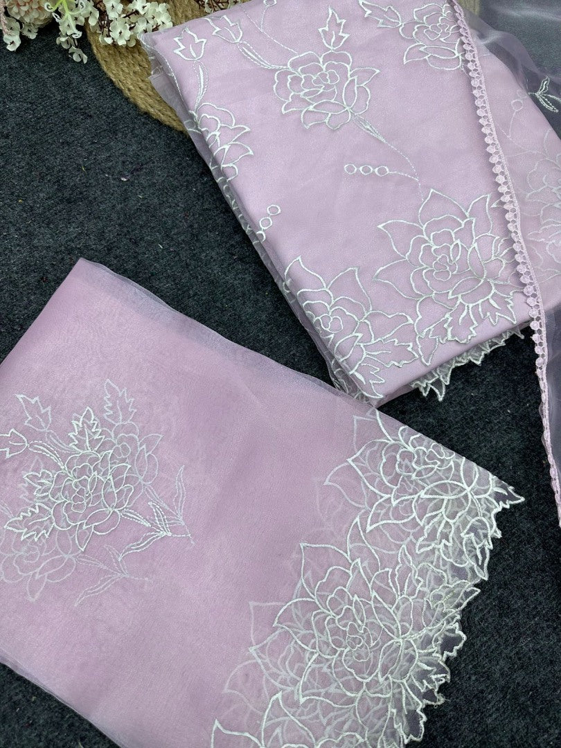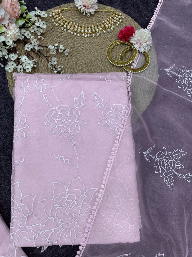 Enhance your ethnic elegance with our exquisite Baby pink Organza Thread Work Unstitched Salwar Suit. Crafted with precision and care, this stunning ensemble is perfect for those who appreciate intricate detailing and timeless style.