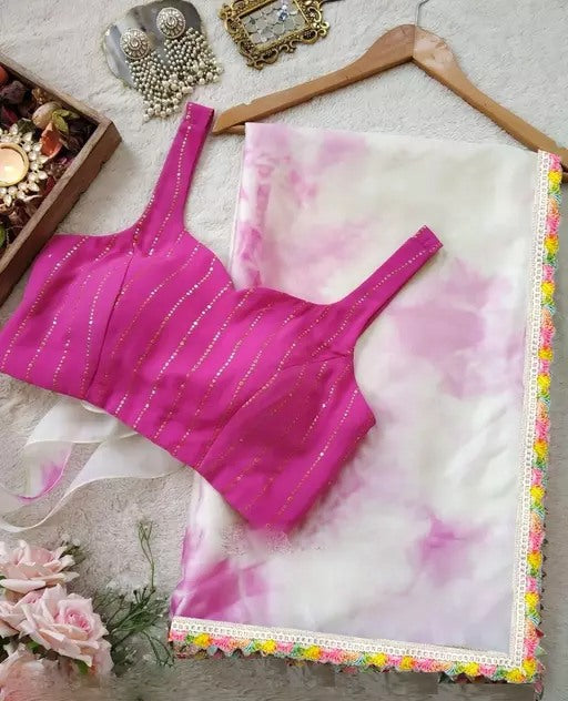 - Description: Women's Shibori Printed Organza Saree with Attractive and Trending Design