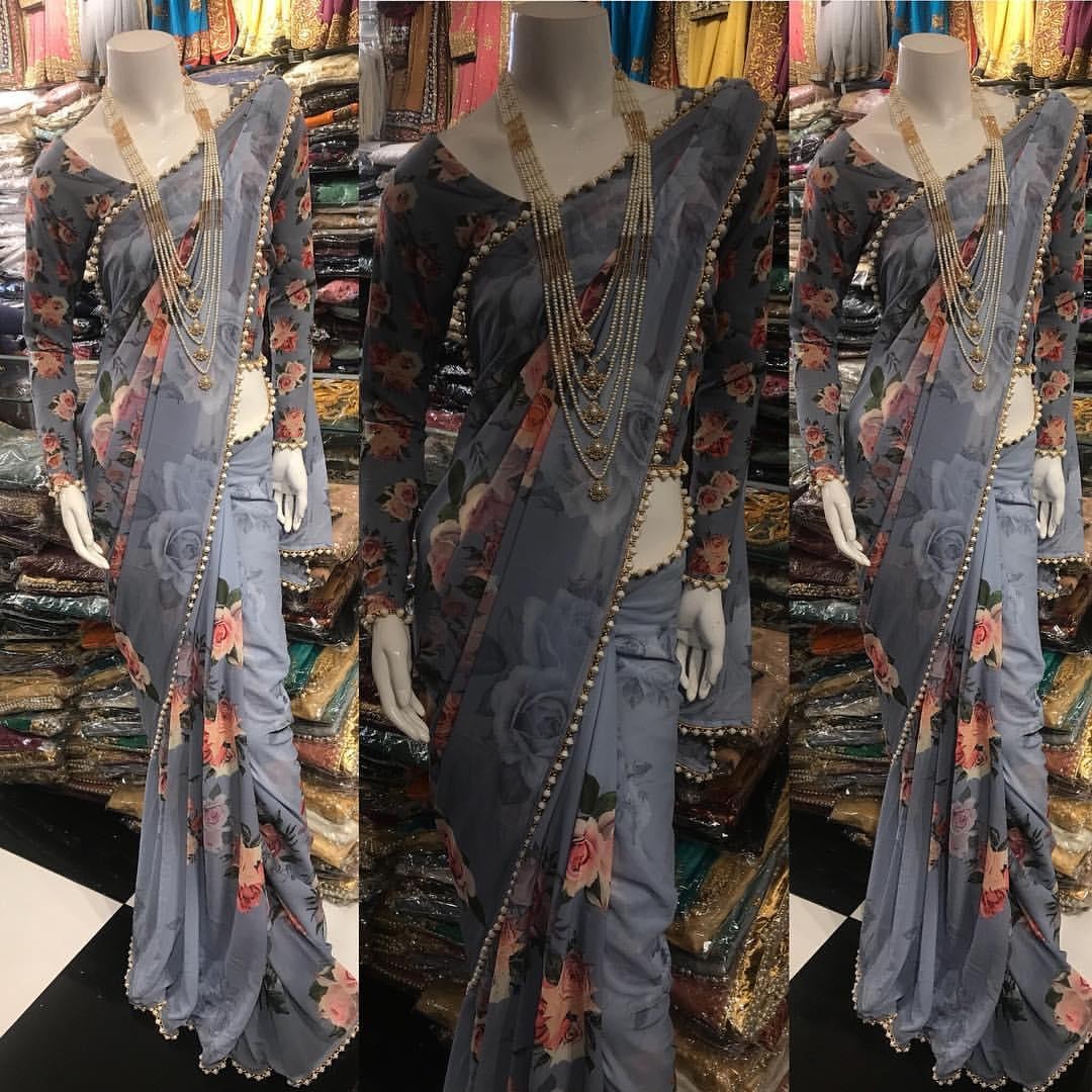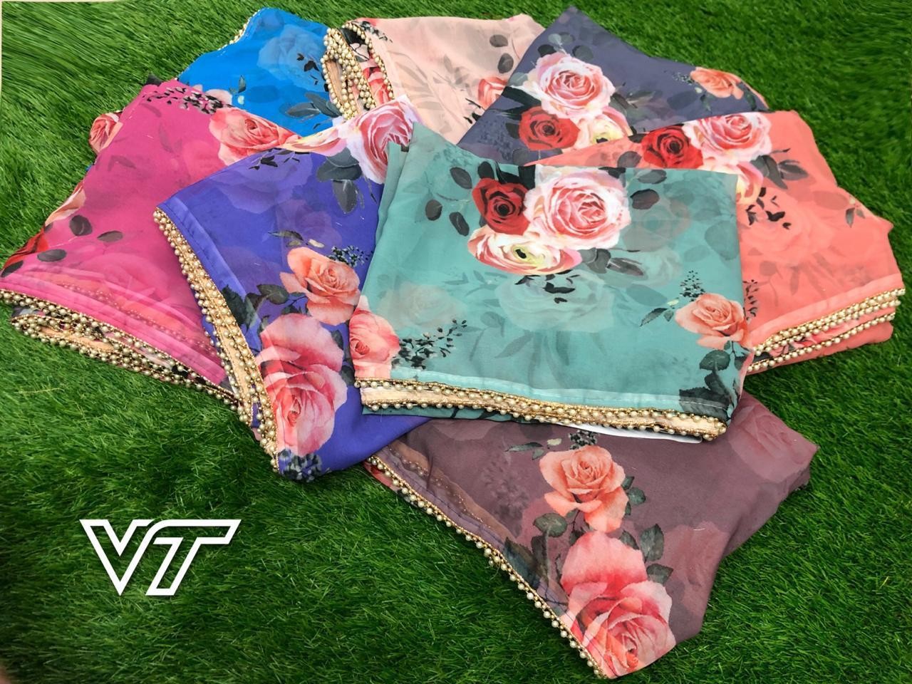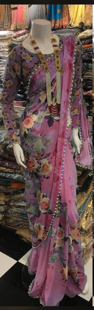 Beautiful pure digital 3d printed georgette designer saree with moti lace