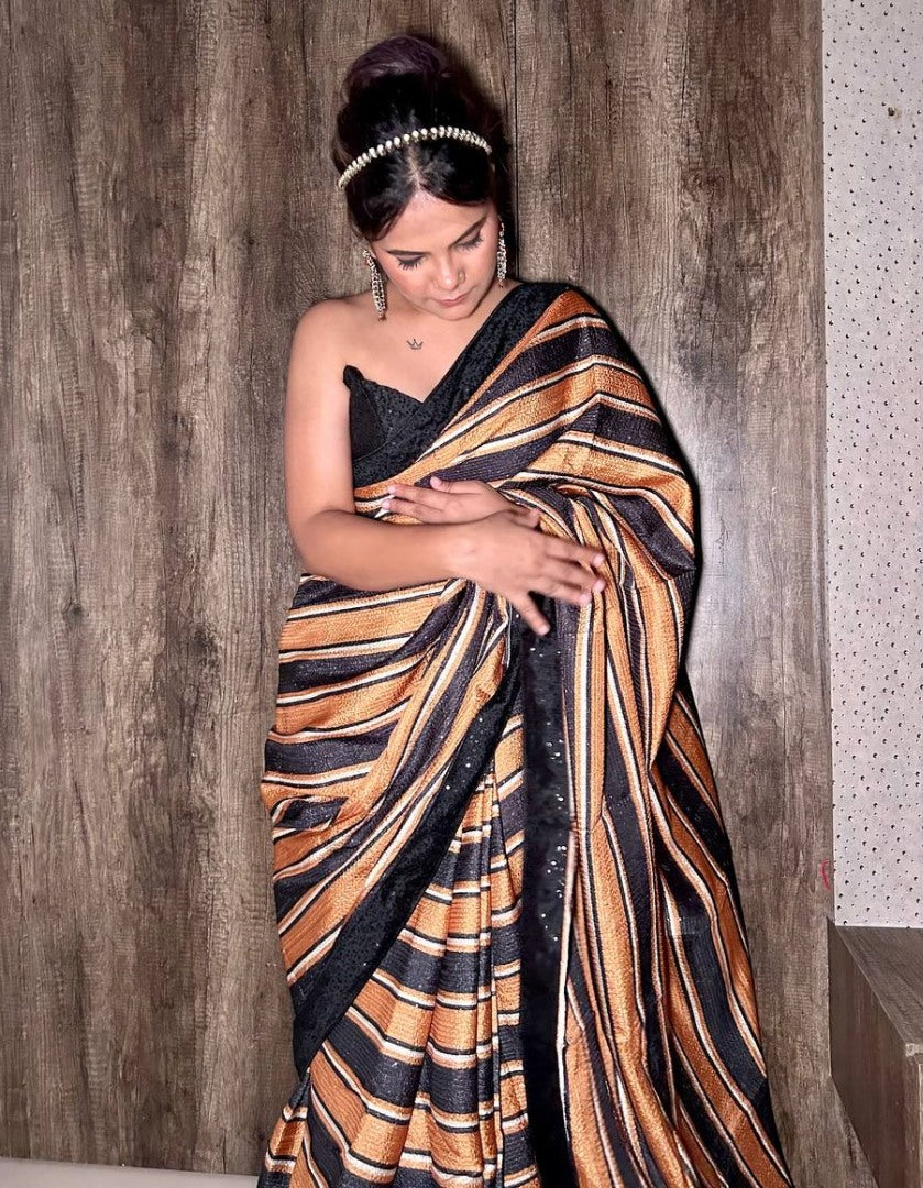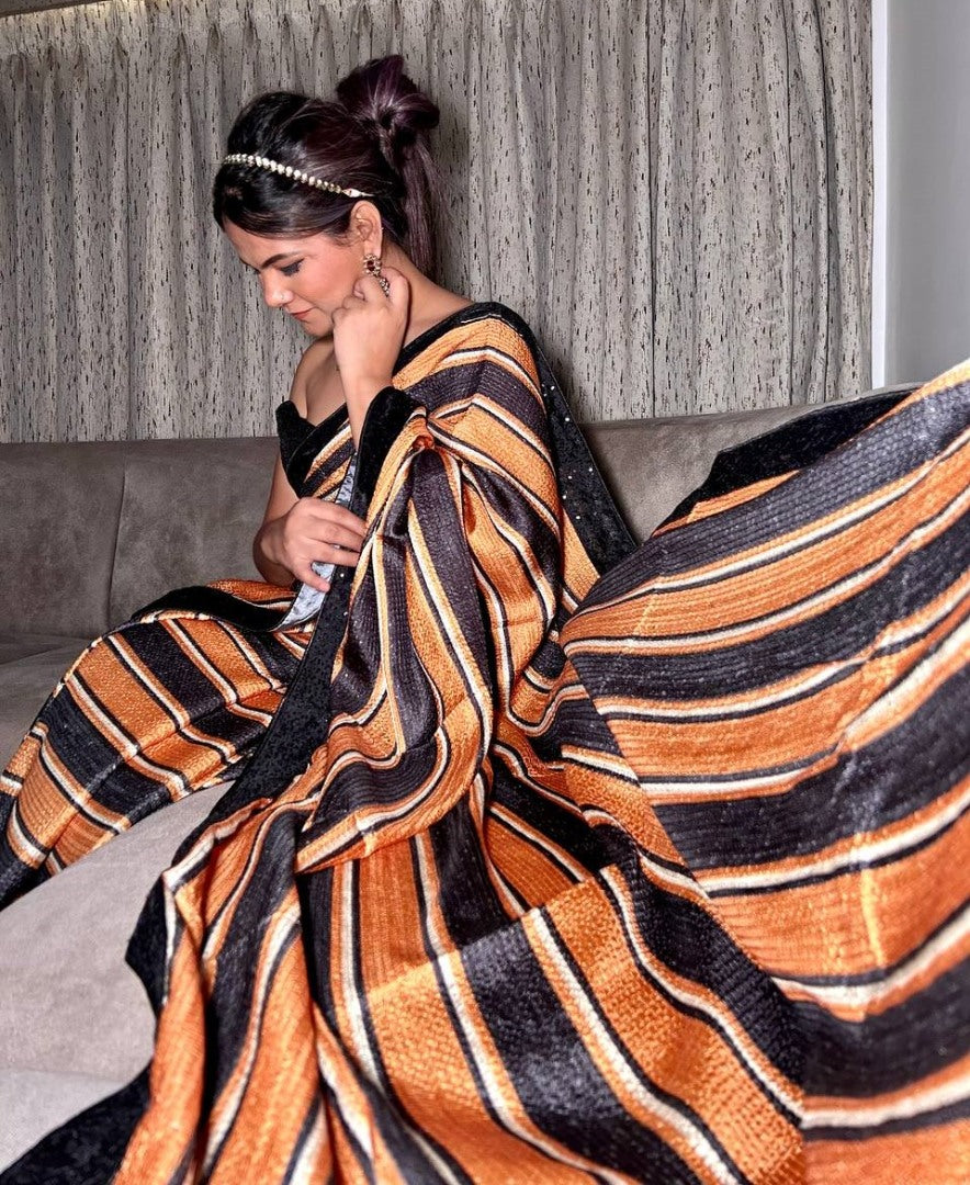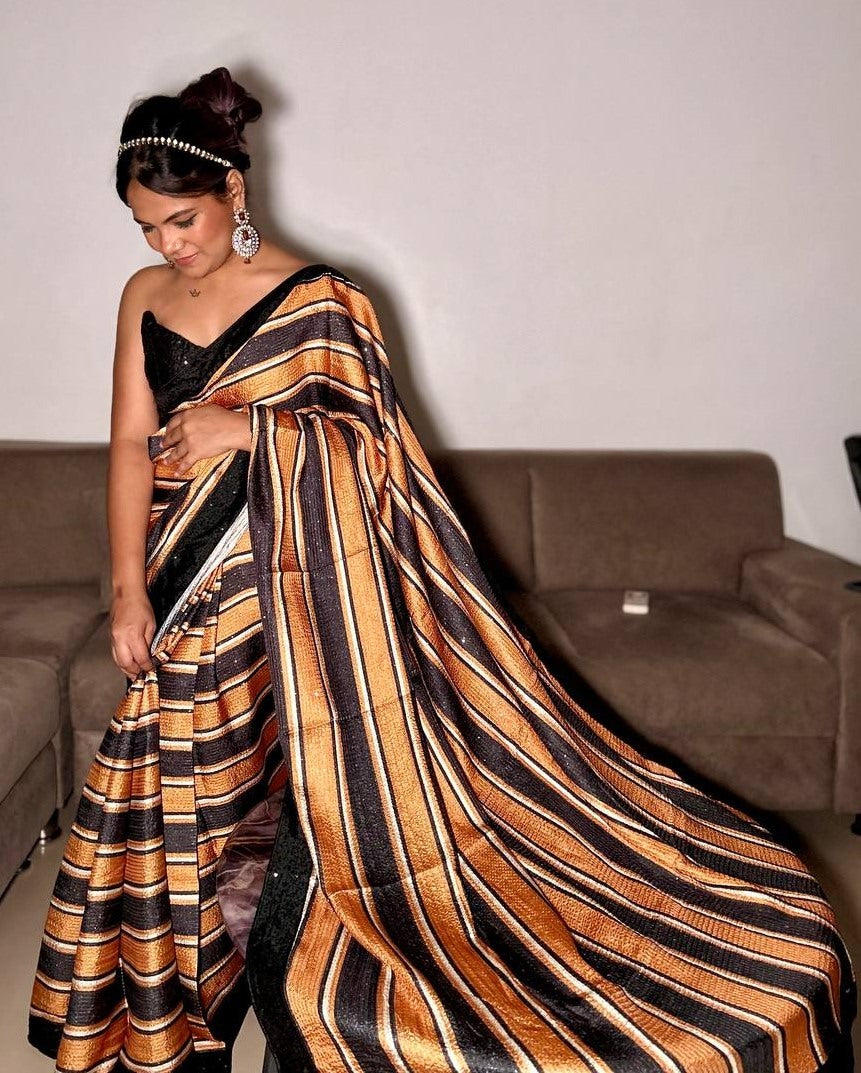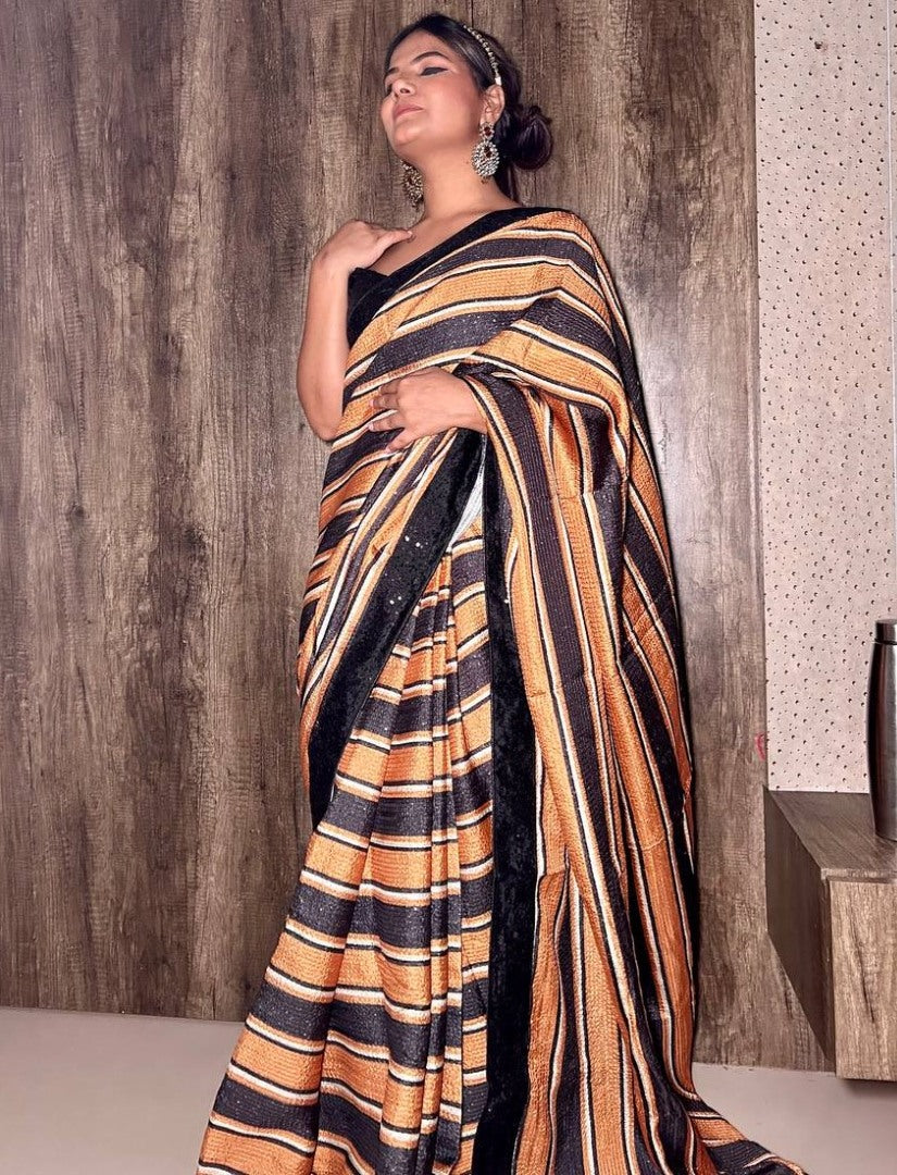 Heavy Slub Silk Digital Print Saree With Sequence Work