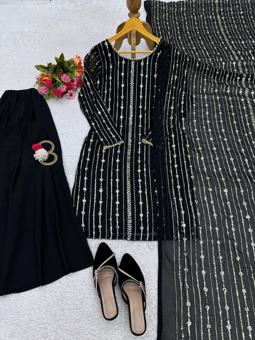 Black georgette sequence work palazzo suit -