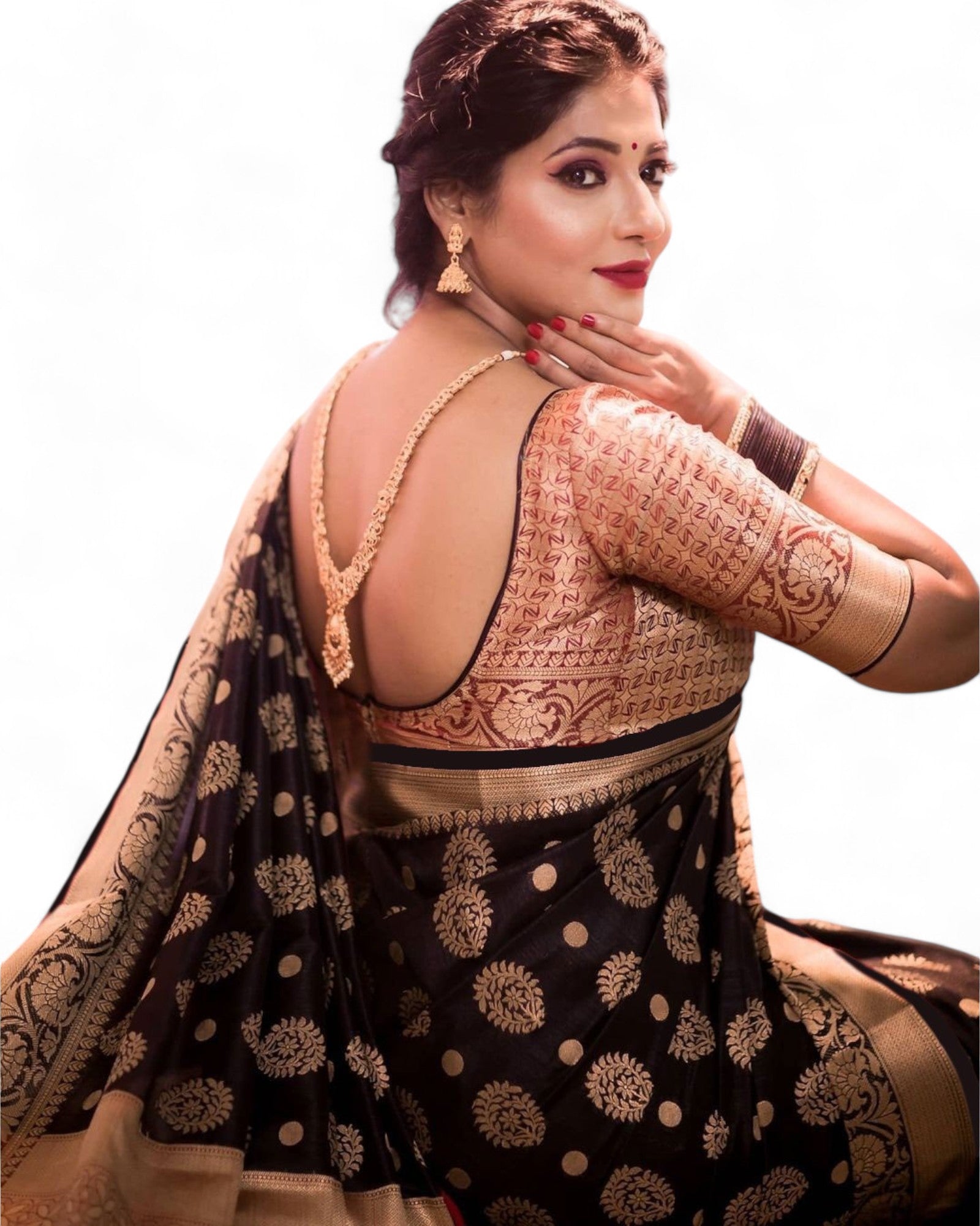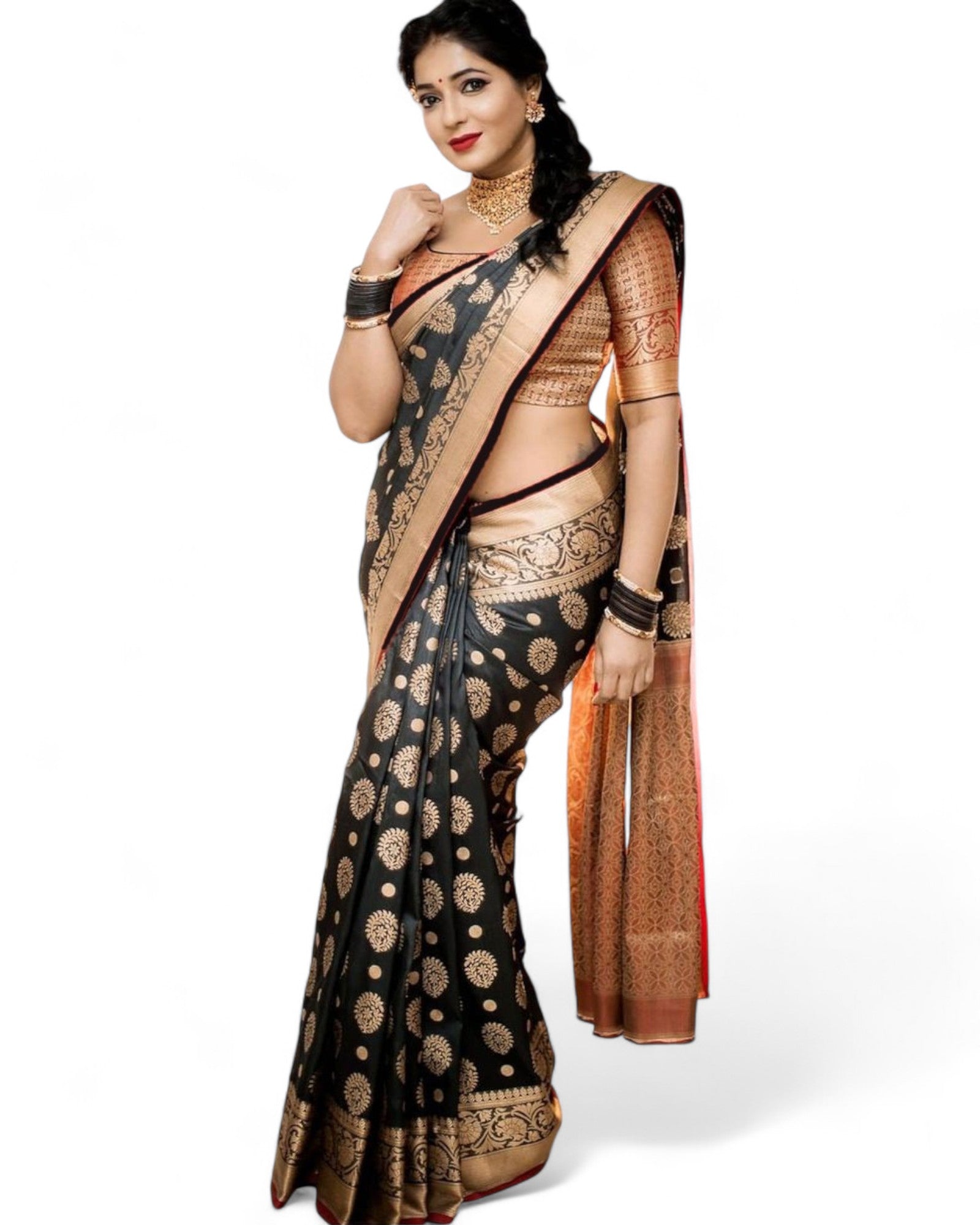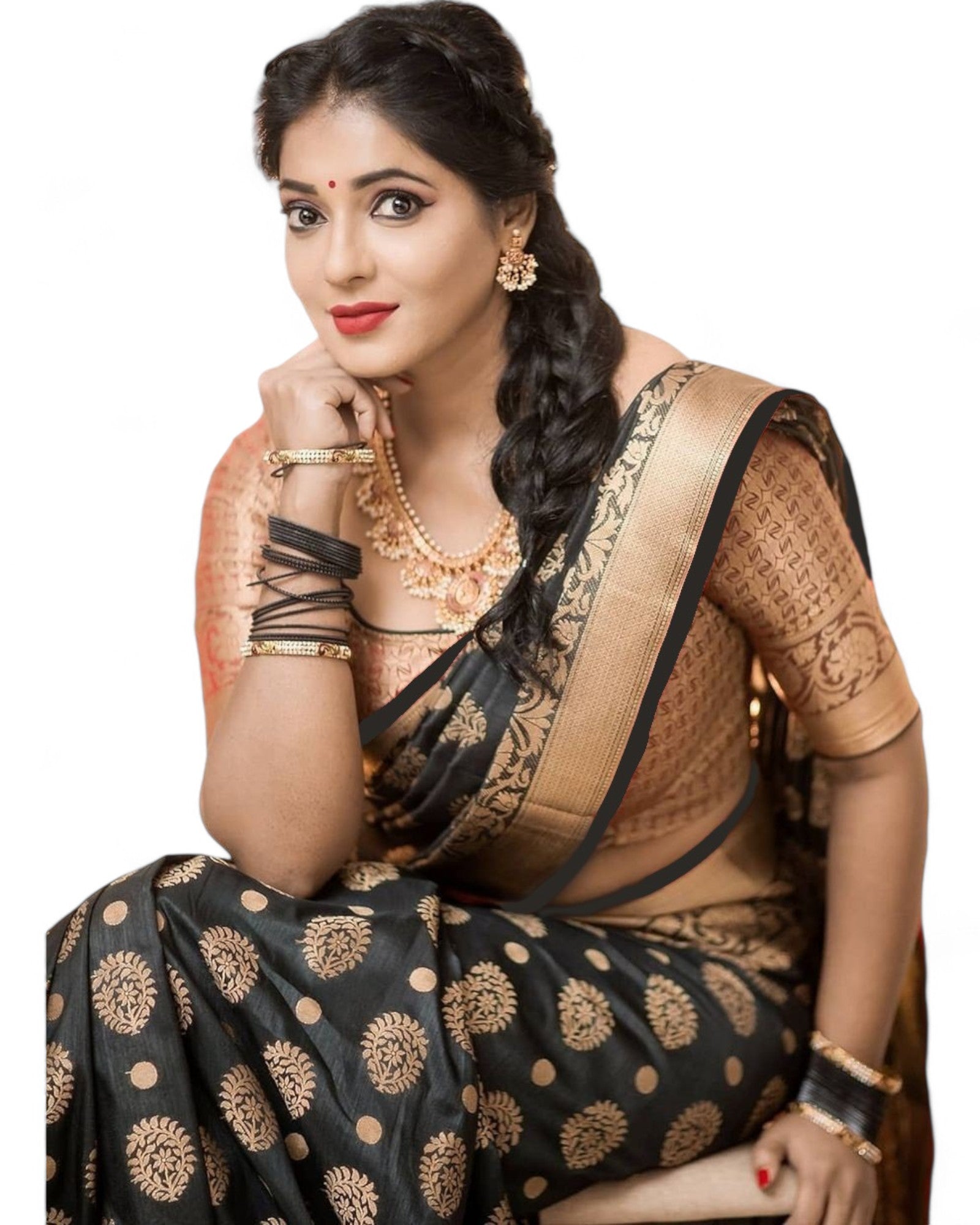 - Saree Fabric: Soft Lichi silk with jacquard work and rich pallu