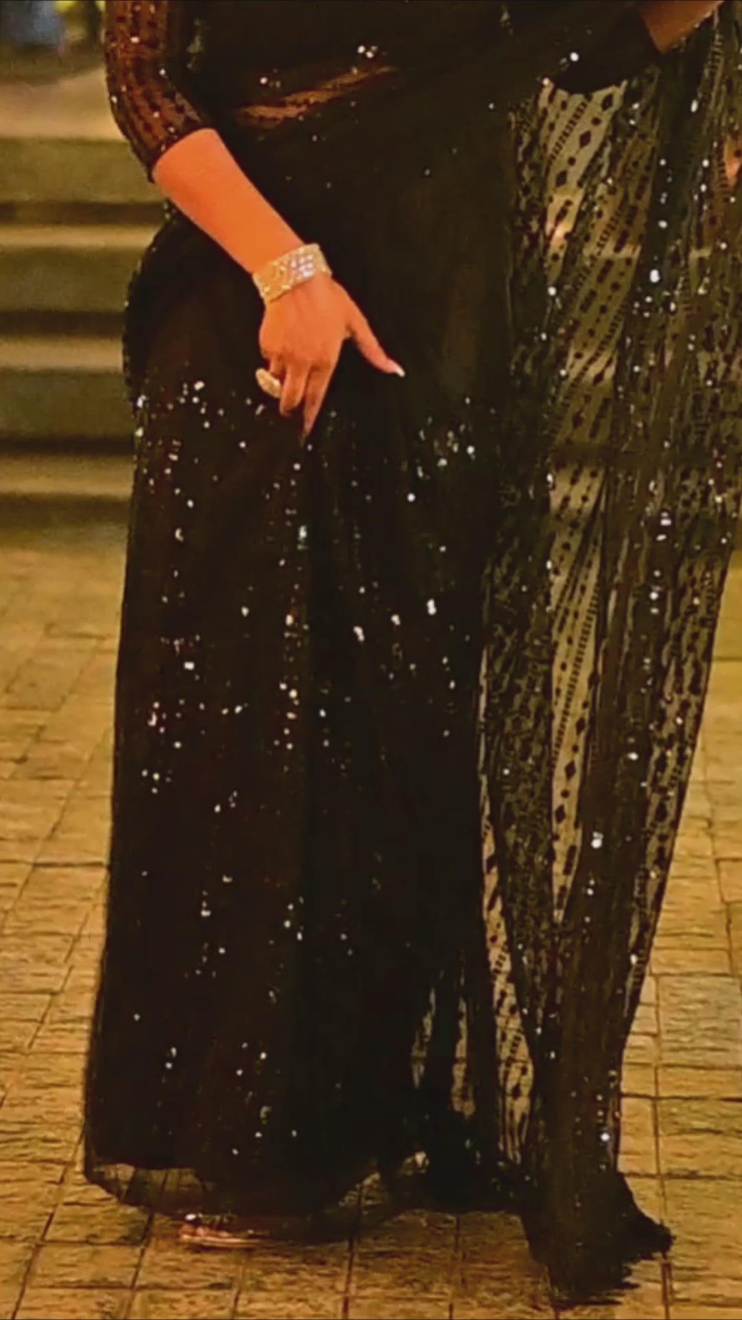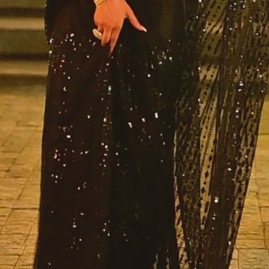 Black Net Heavy Sequins Thread Work Party Wear Designer Saree
