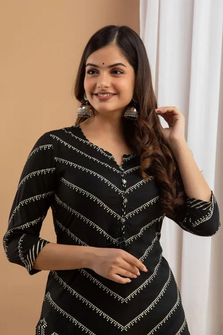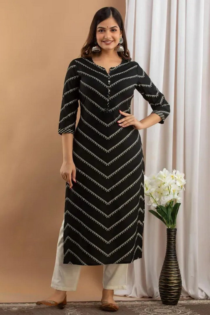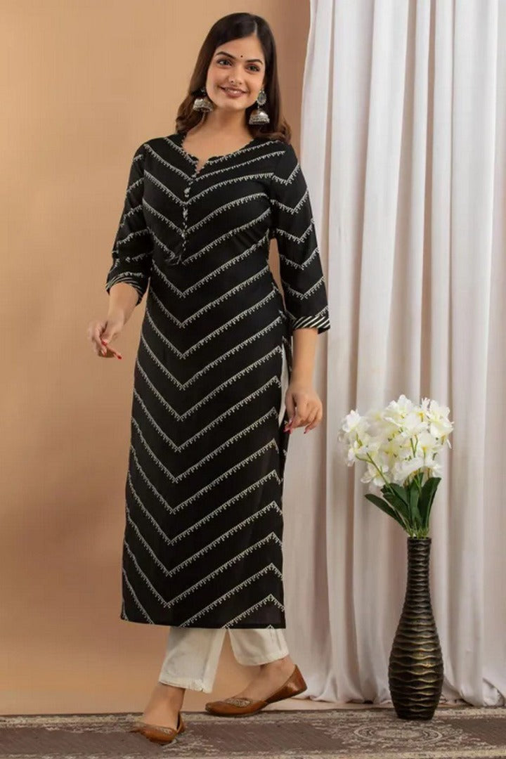 Black Rayon Button Lehriya Printed Straight Kurti -