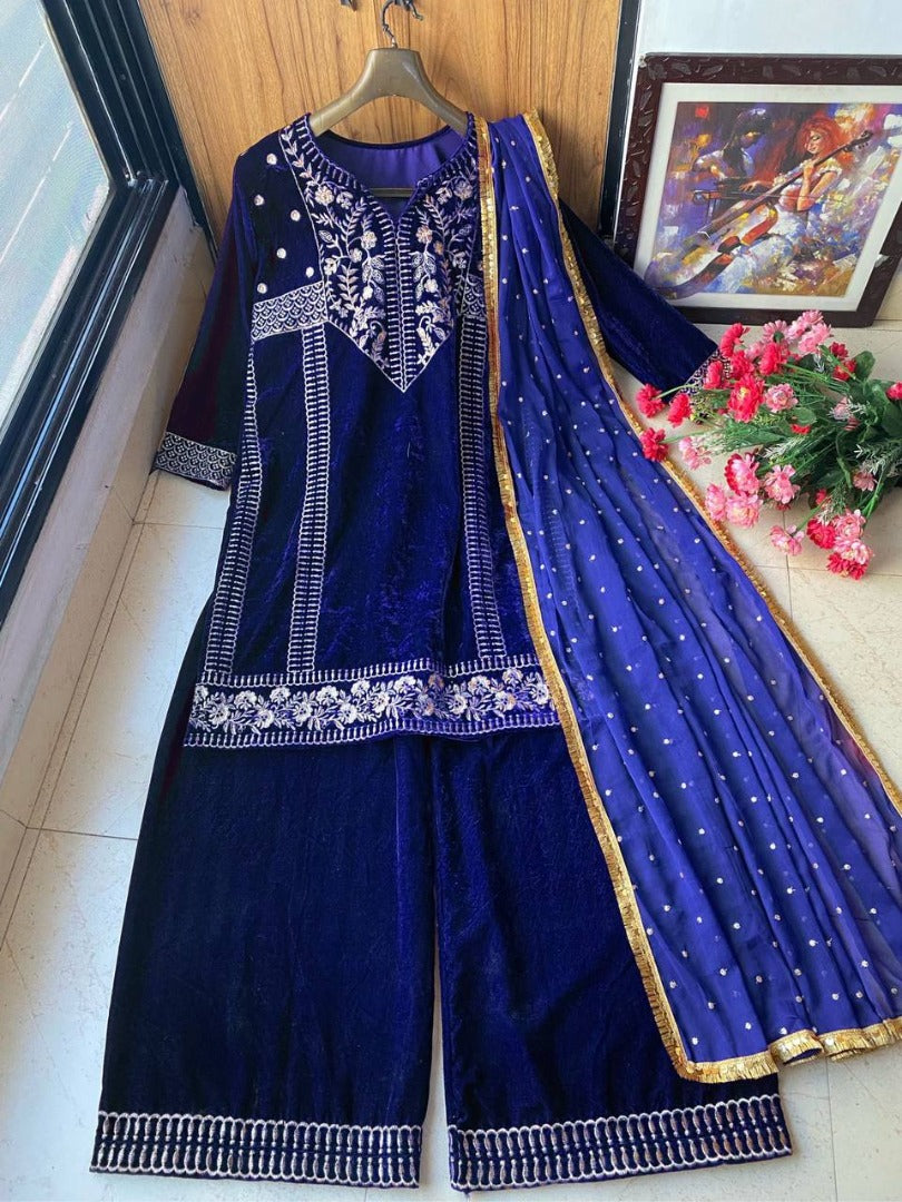 Plazzo: Heavy 9000 Velvet With Zari Embroidery Work (Fully Stitched)