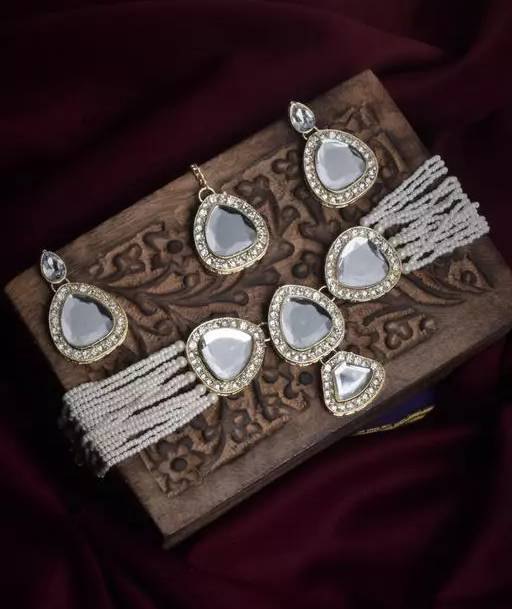 Gold plated kundan and white beads jewellery set