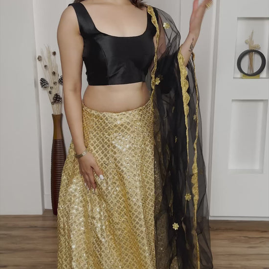 Golden Kasturi Silk Heavy Sequin Work Party Wear Lehenga Choli
