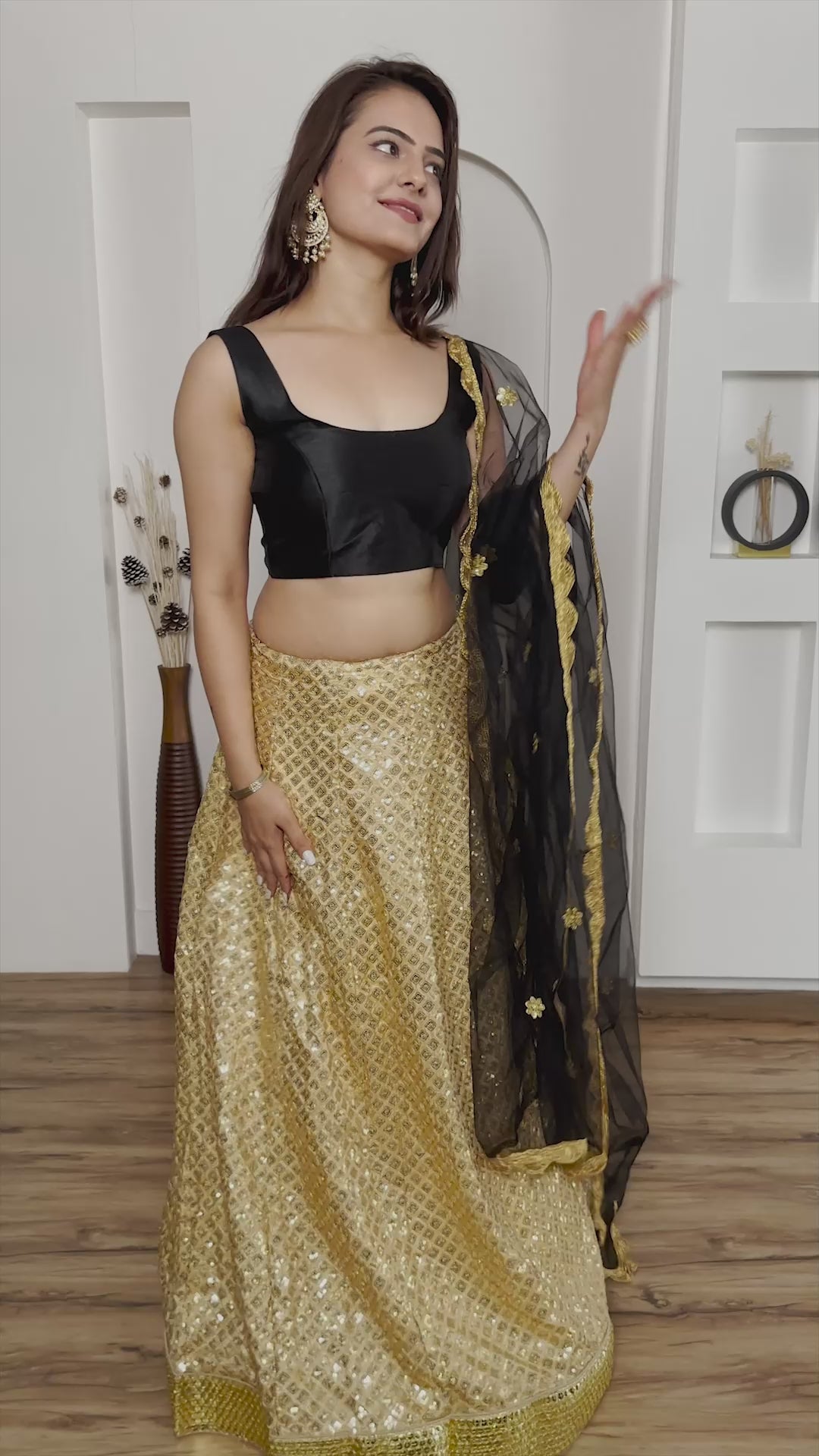 - Dupatta: Net with sequin work and jhalar border