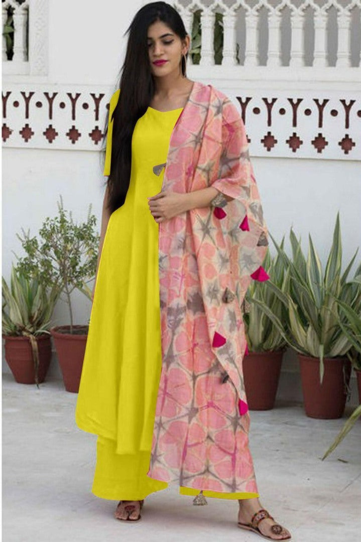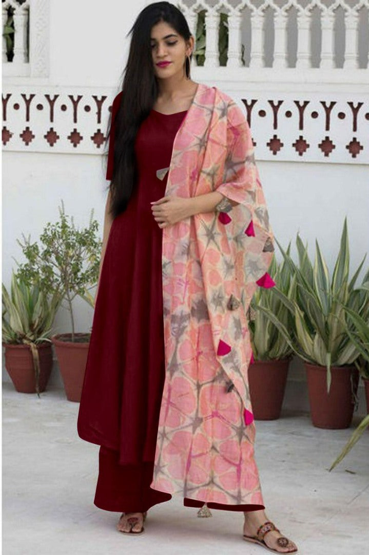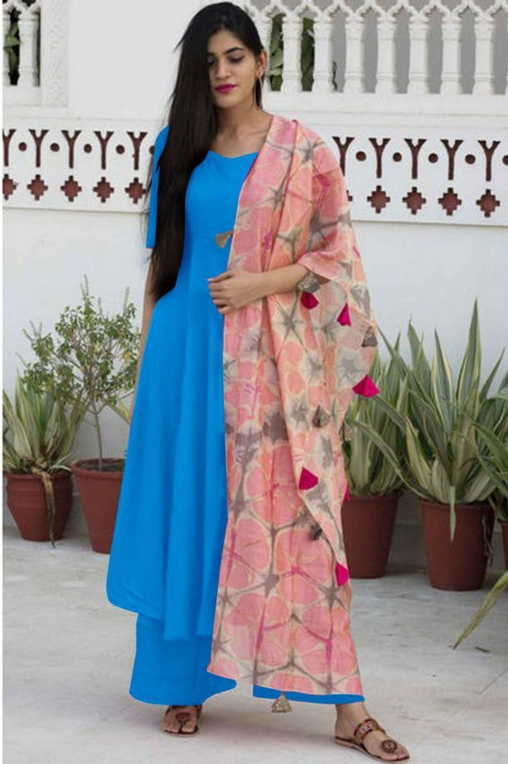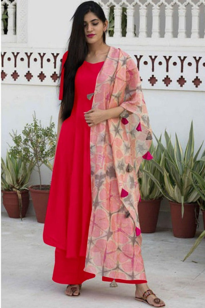 Duppata Fabric :-Russion silk WITH FOUR SIDE *TASSELS *(Digital print on dupatta )(Plus Rayon Cotton )