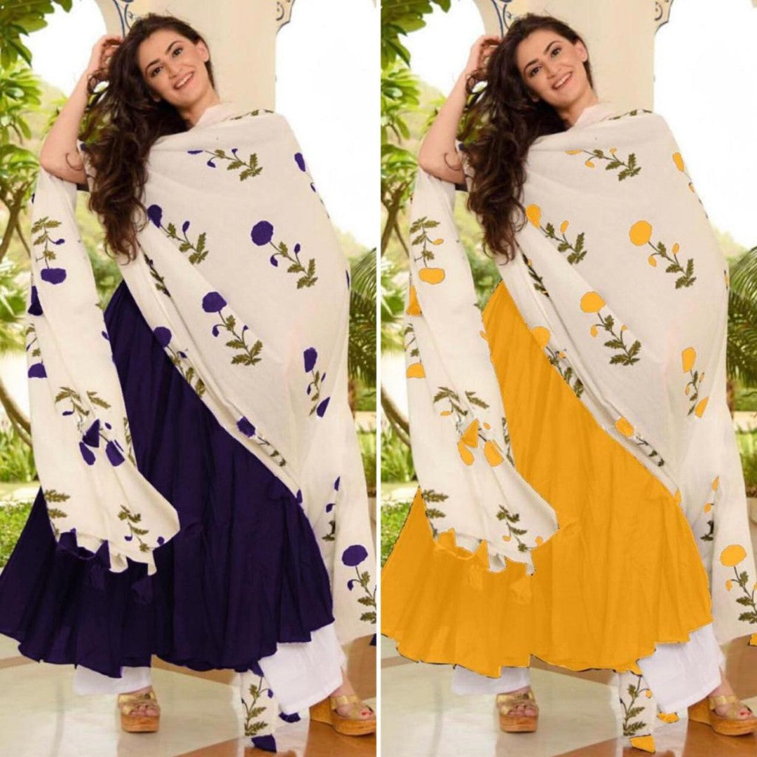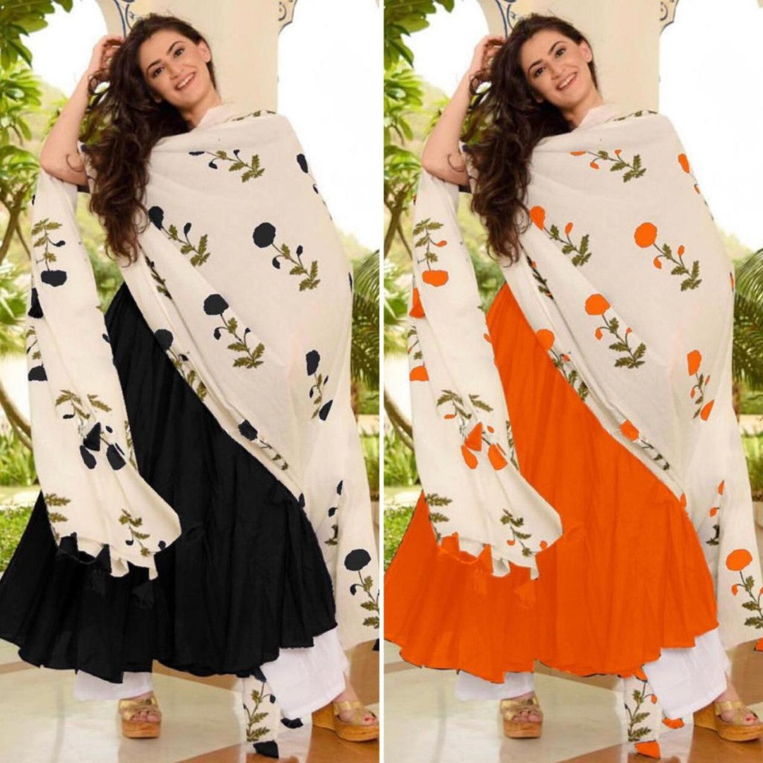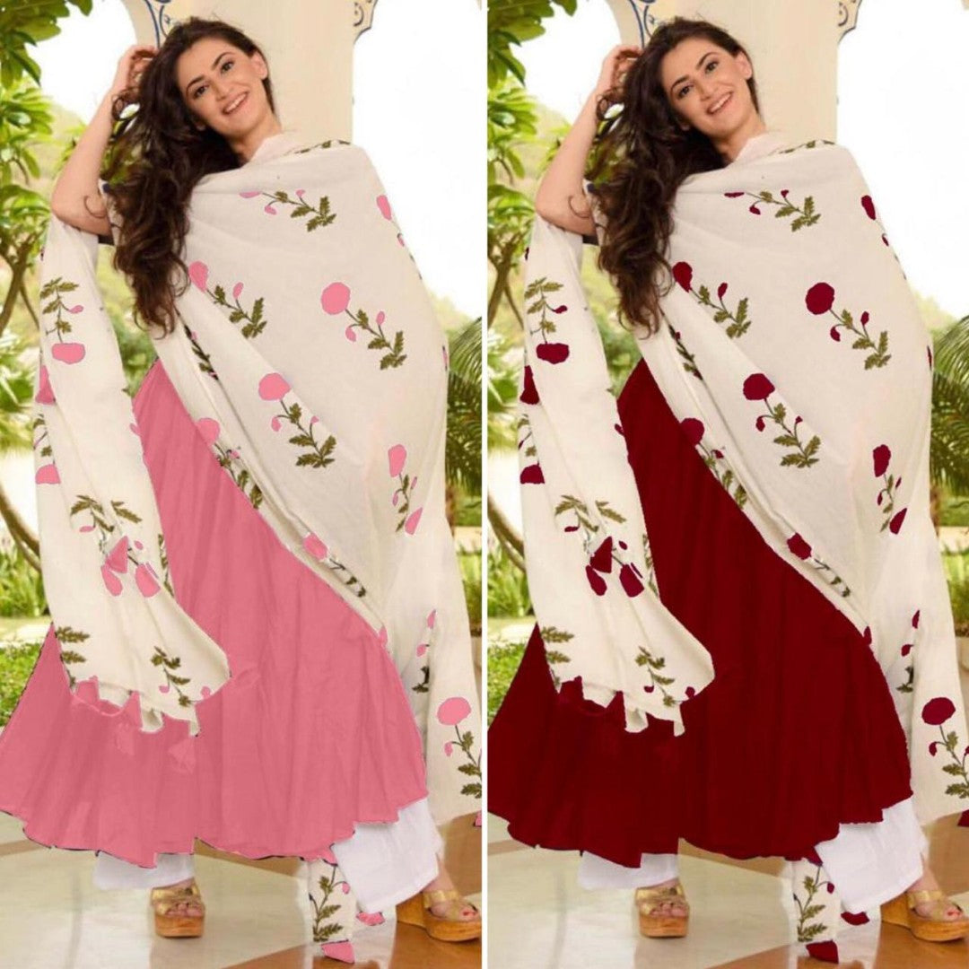 GT Rayon cotton plain plazzo kurti with printed dupatta