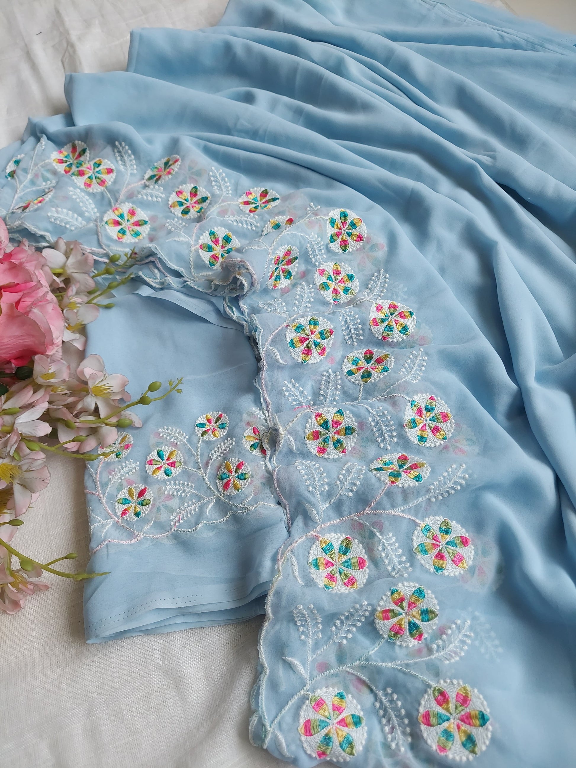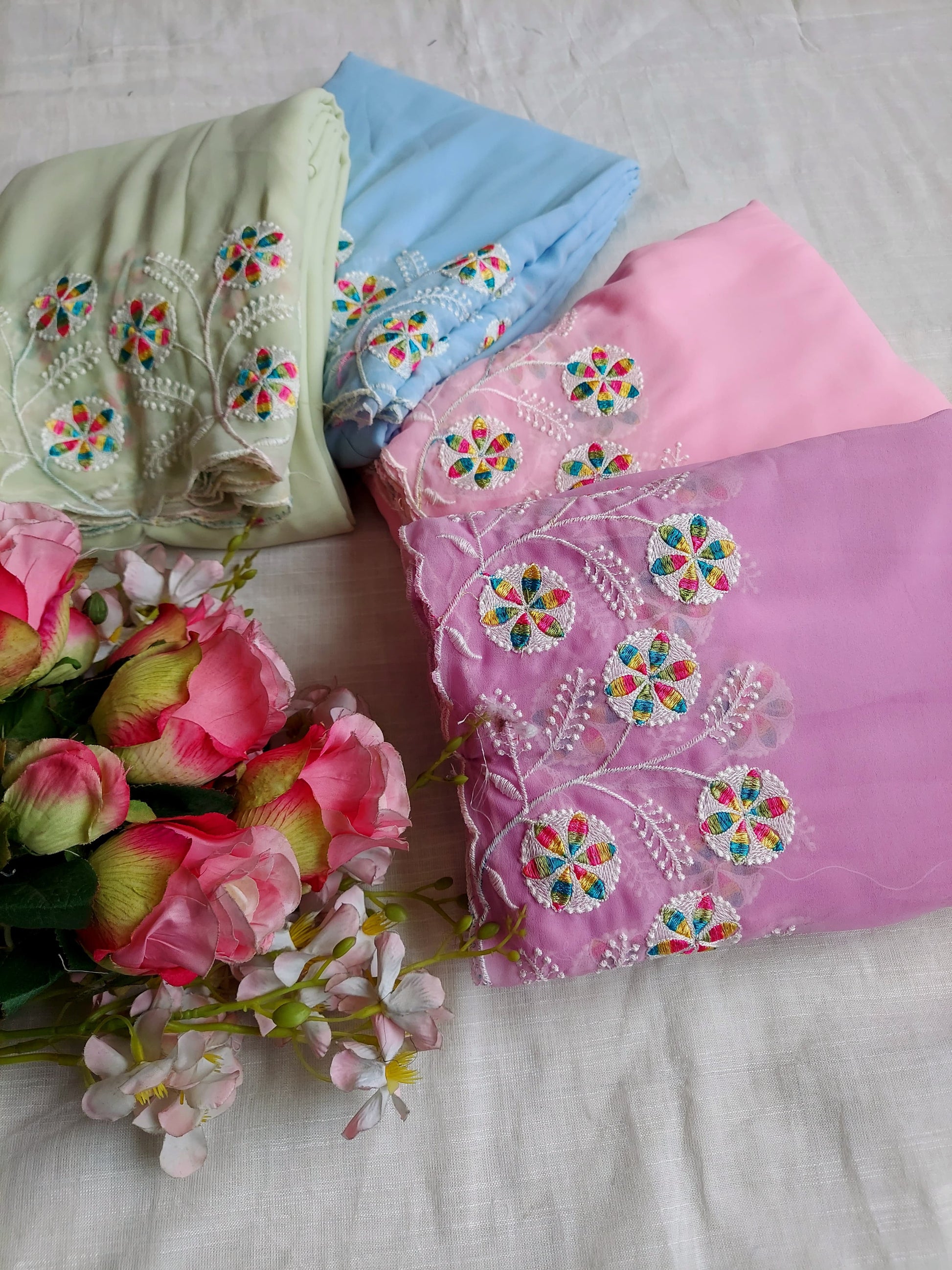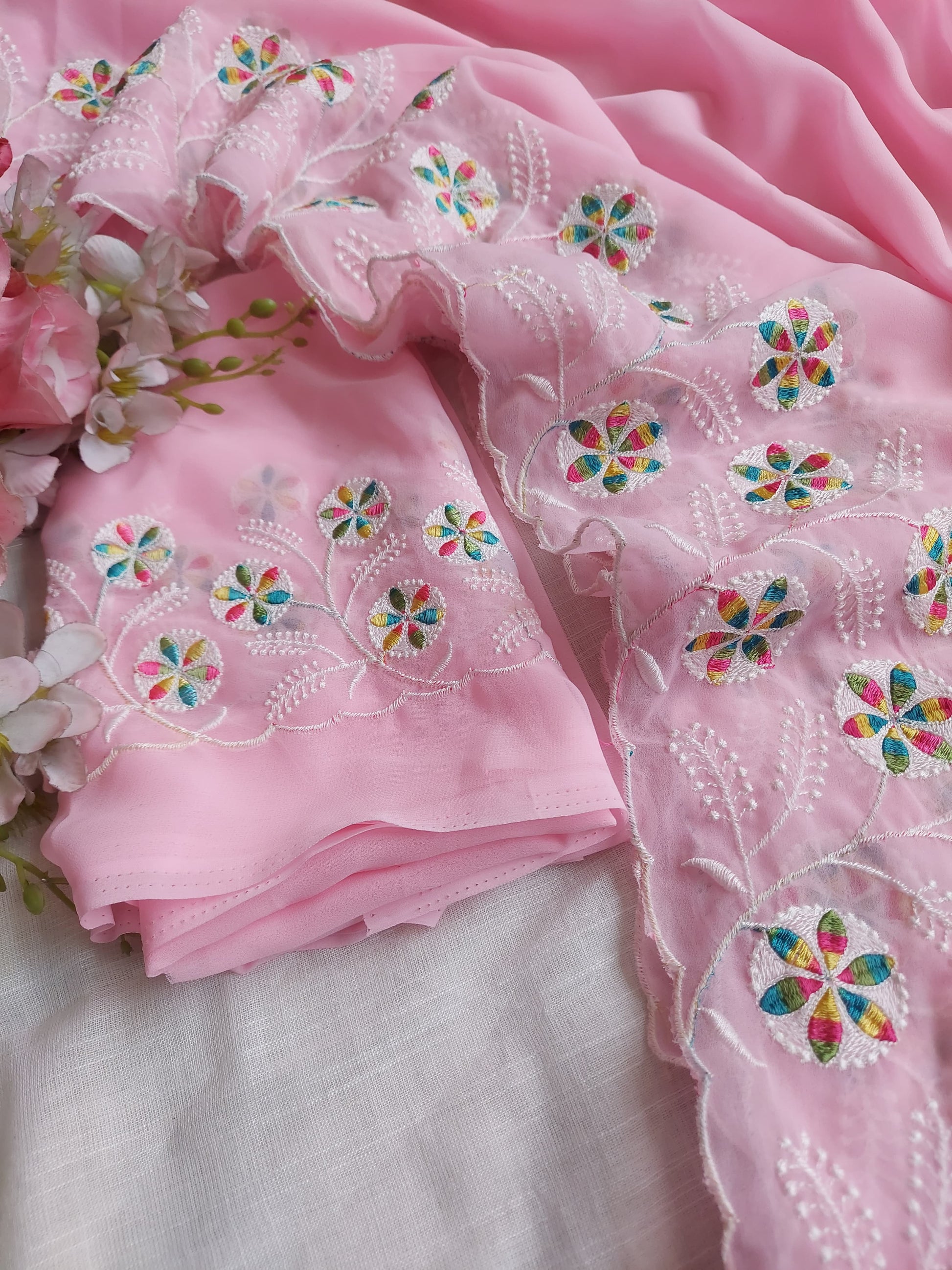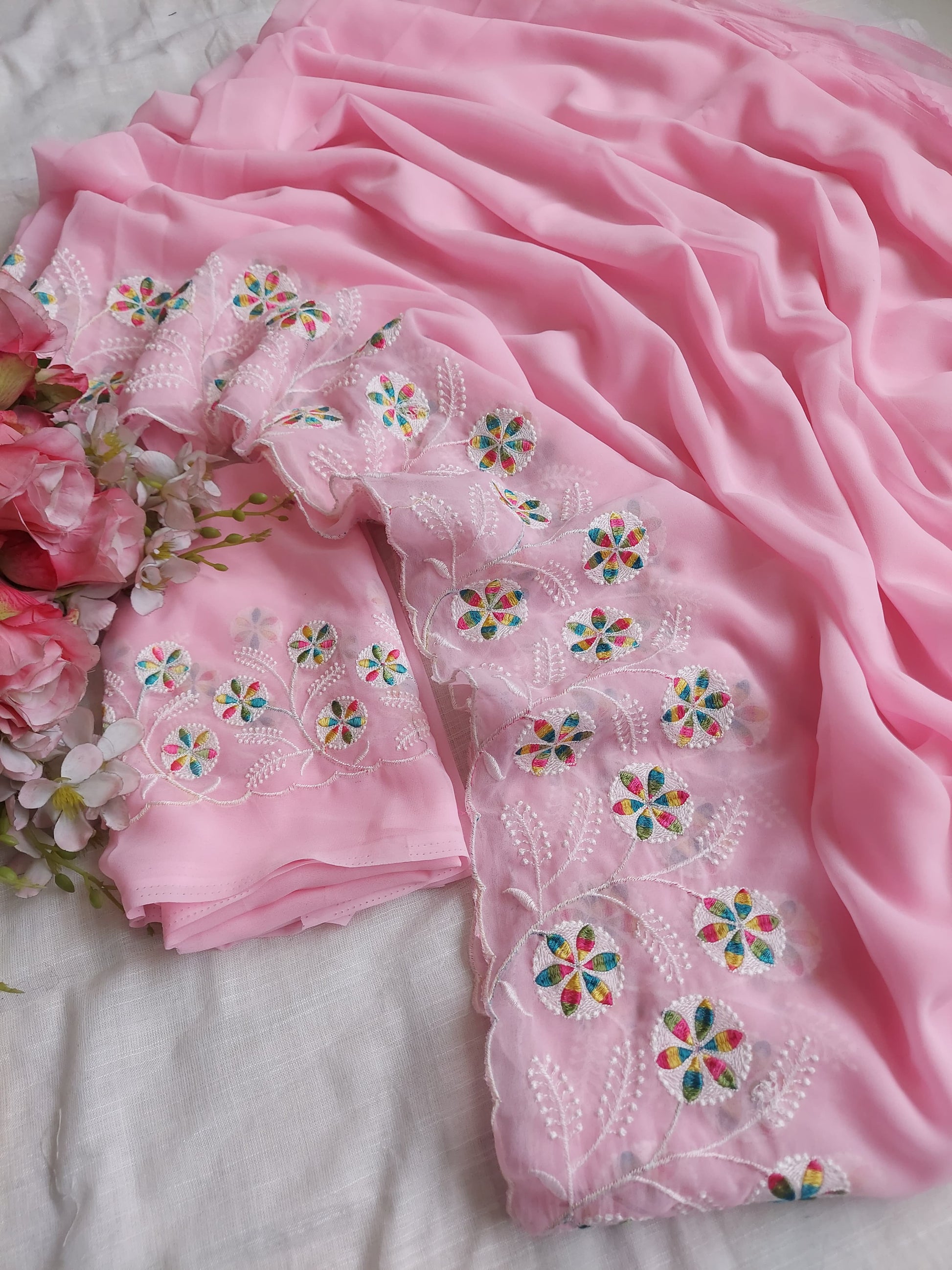 Heavy Georgette Beautiful Embroidered Stylish Office Wear Saree