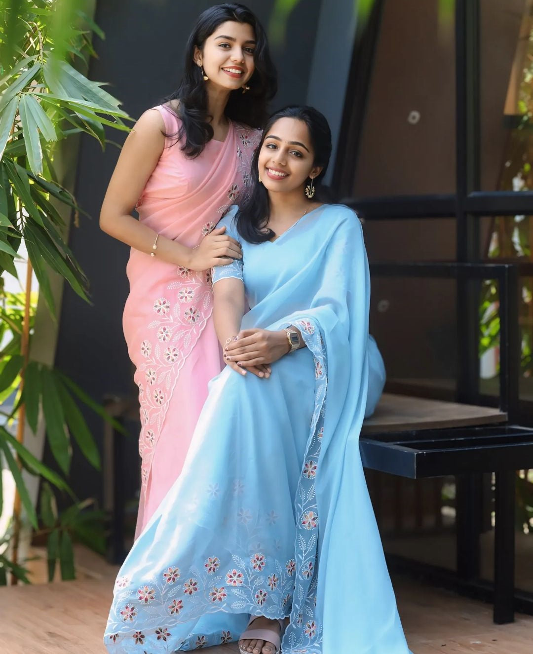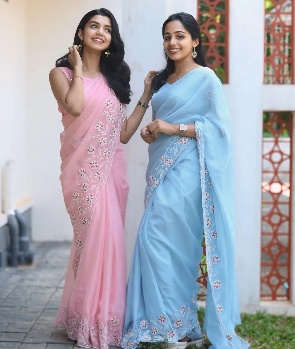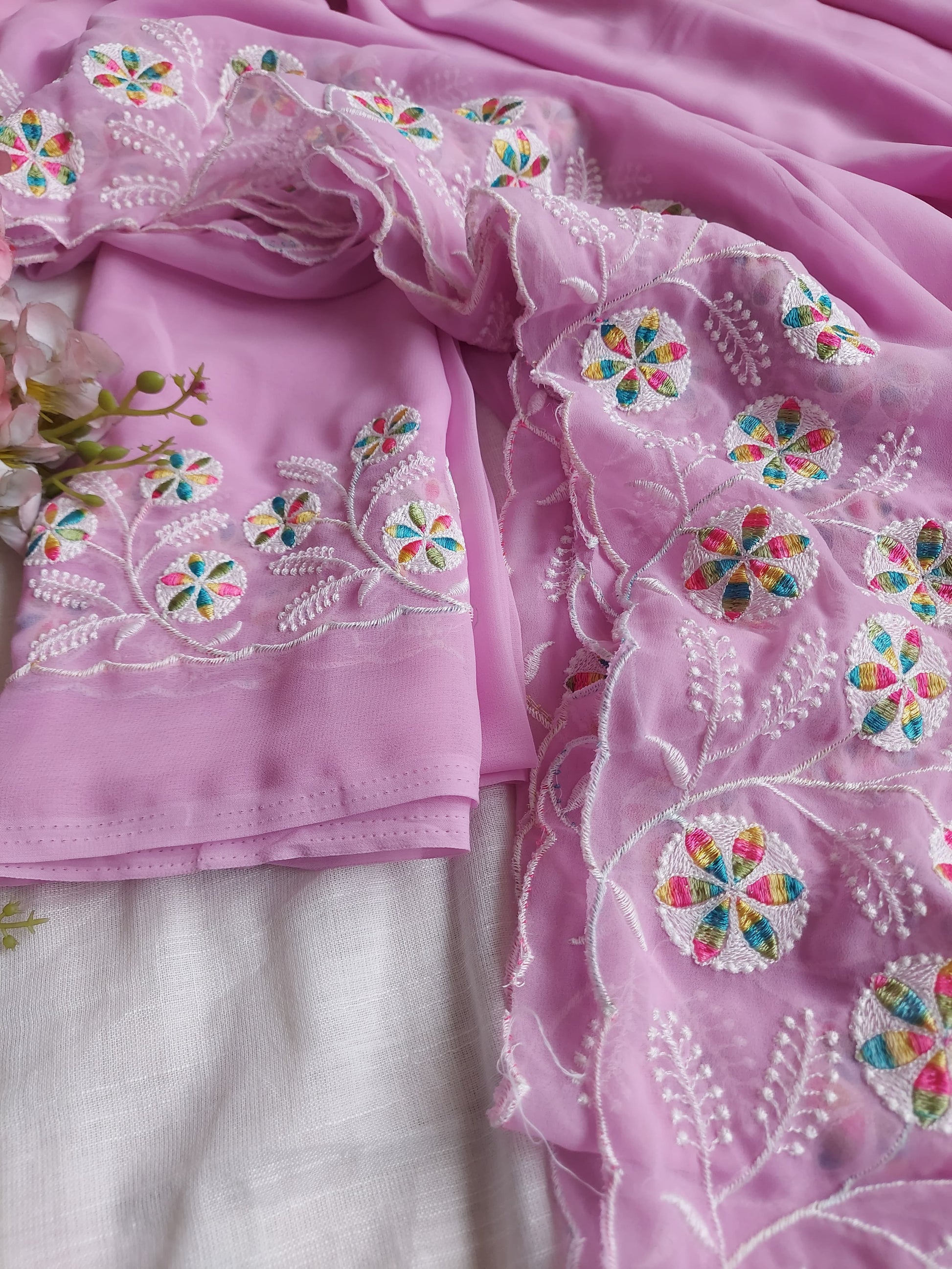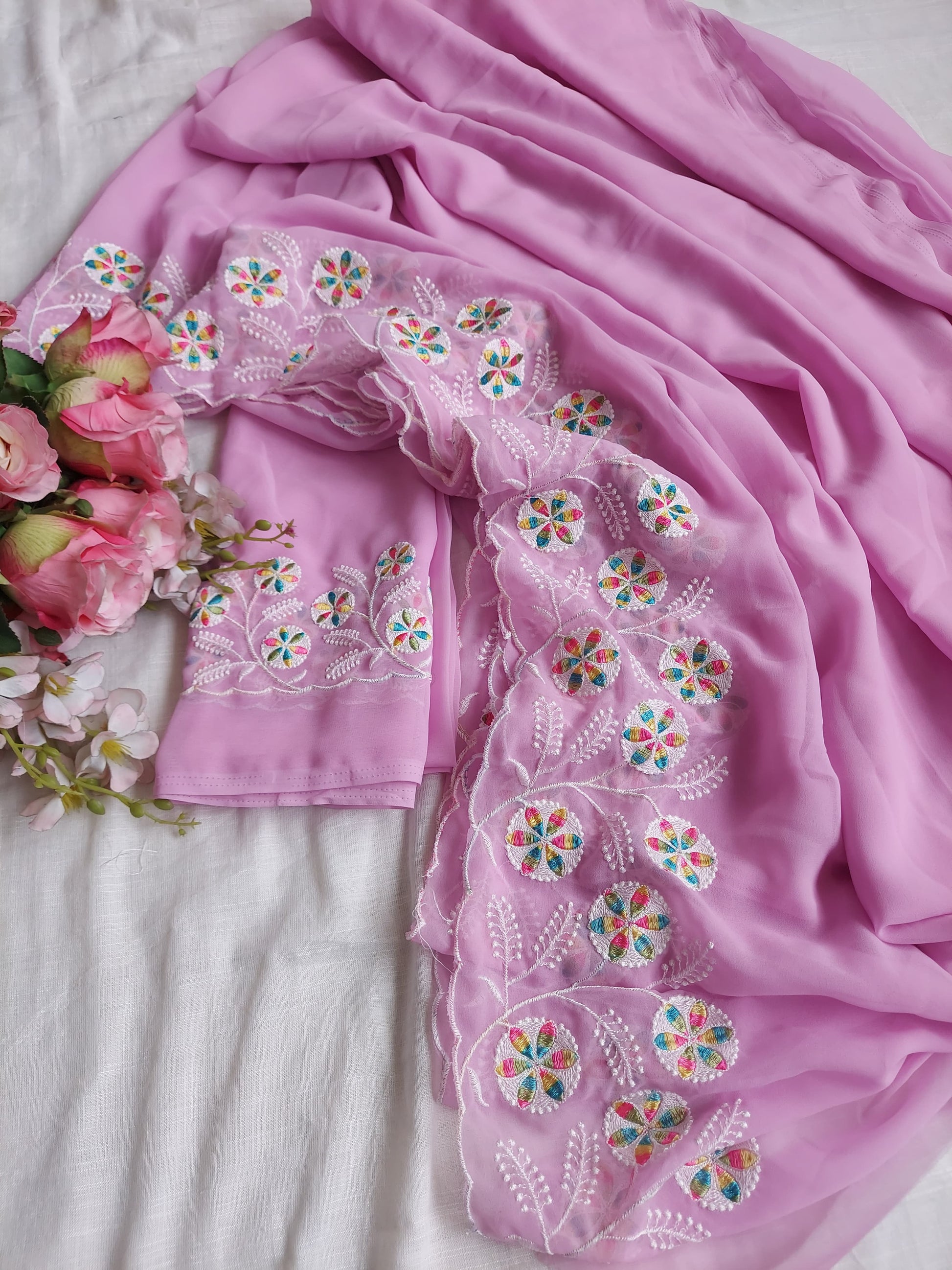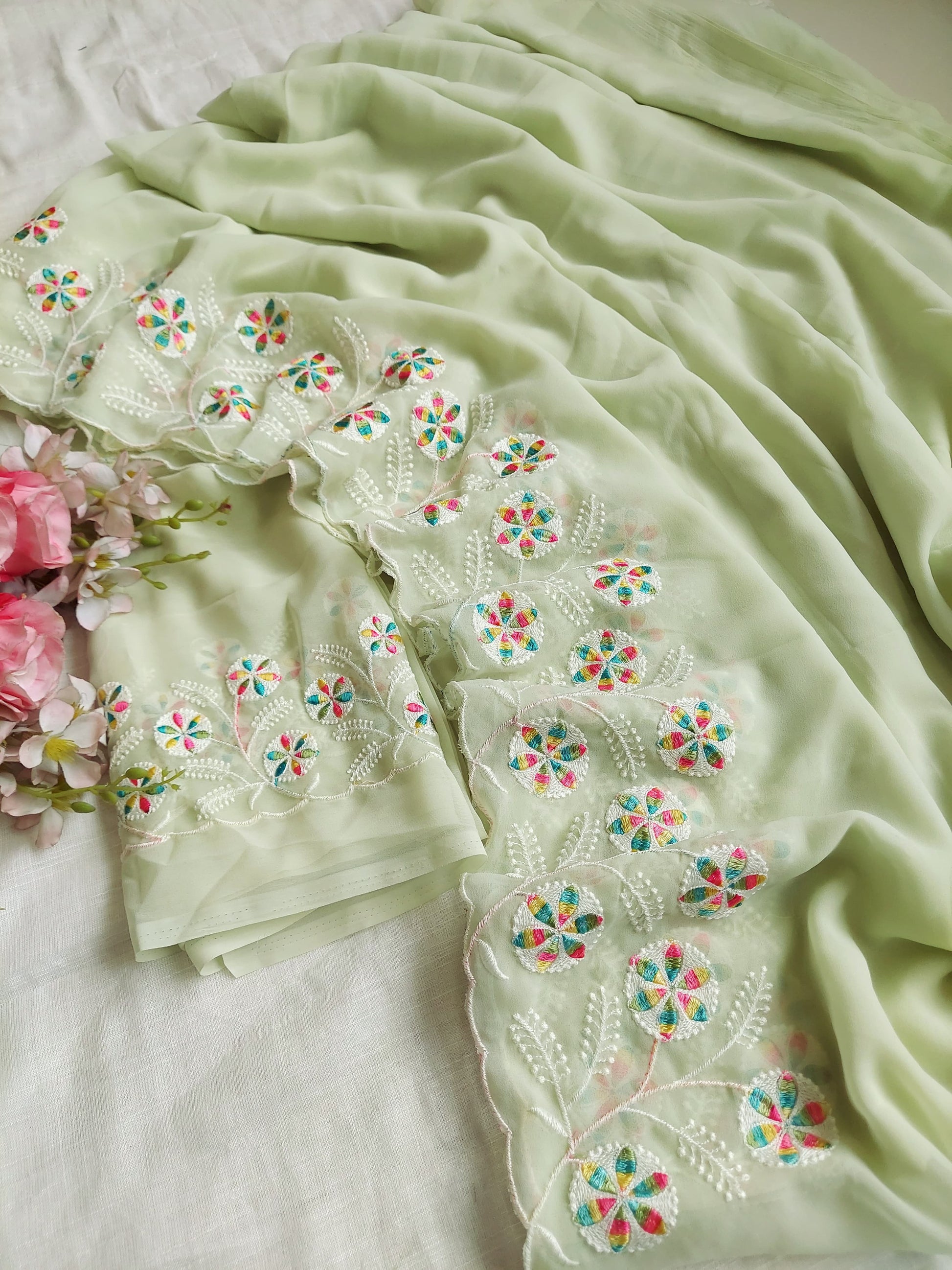Heavy Georgette Beautiful Embroidered Stylish Office Wear Saree