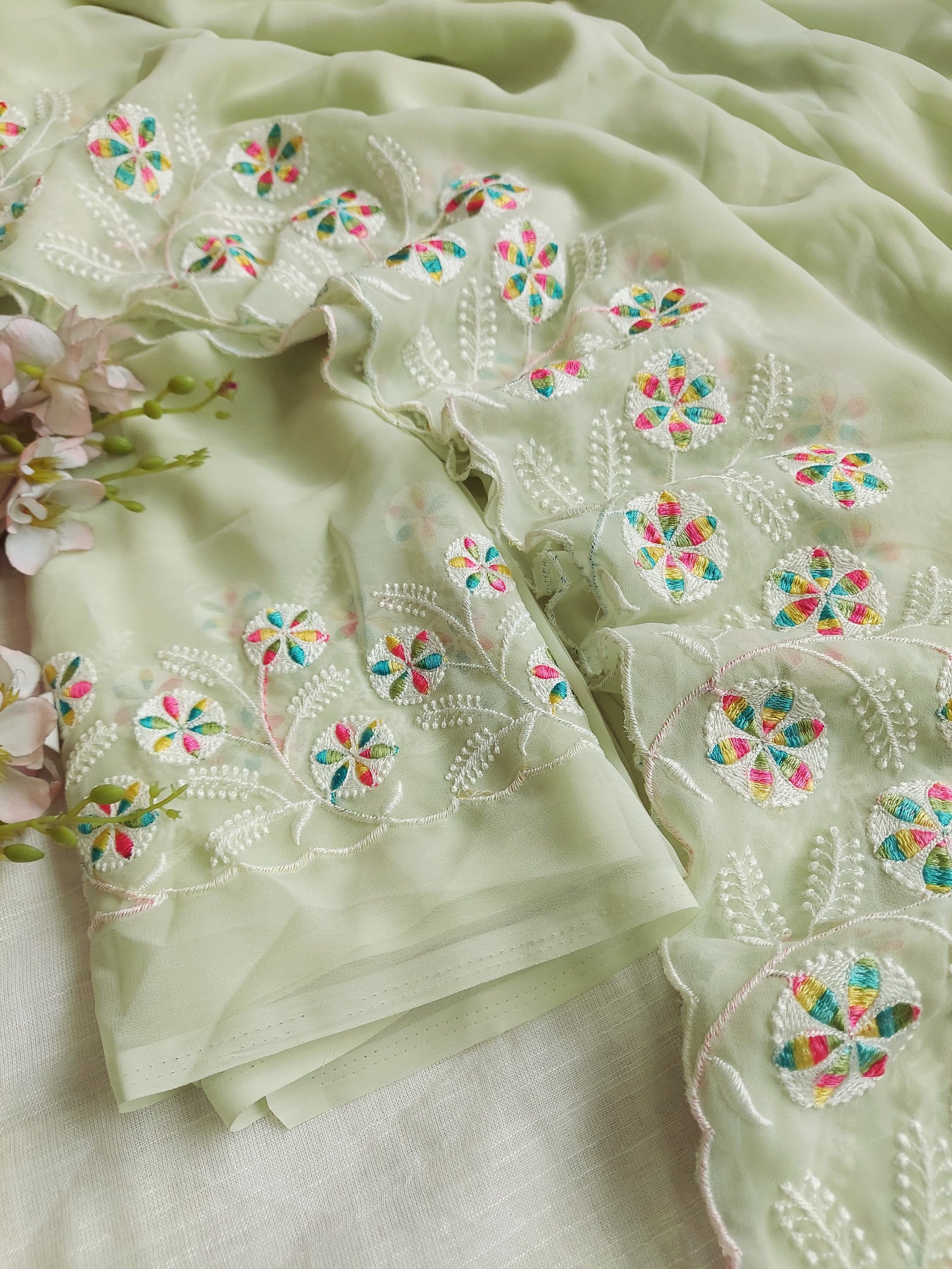 - Blouse Fabric: Blooming Heavy Georgette with Heavy Multi Embroidery Work
